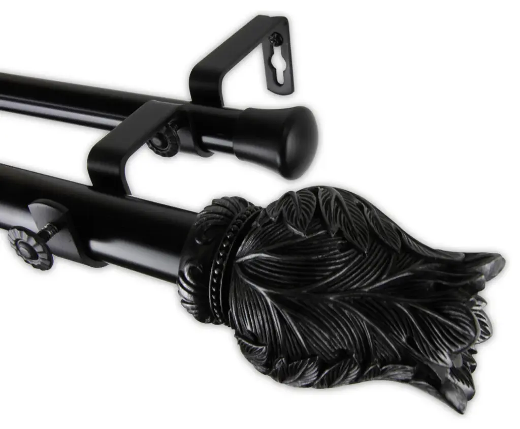 Decorate your window with this Rod Desyne Bud Double Curtain Rod. This rod is made of solid steel pole while lends a sophiscated touch and finished appeal to your window treatment, regardless of room or drapery style. Features:Includes two 13/16 inch diameter high quality steel telescoping poles, extends 28-48 inch, 2 brackets and 2 finialsEach Bud finial measures W 2.5 inches x H 1.5 inches x D 1.5 inchesProjection: wall to back rod: 3.75", wall to front rod: 6.375"