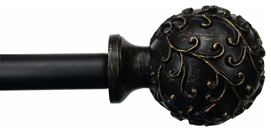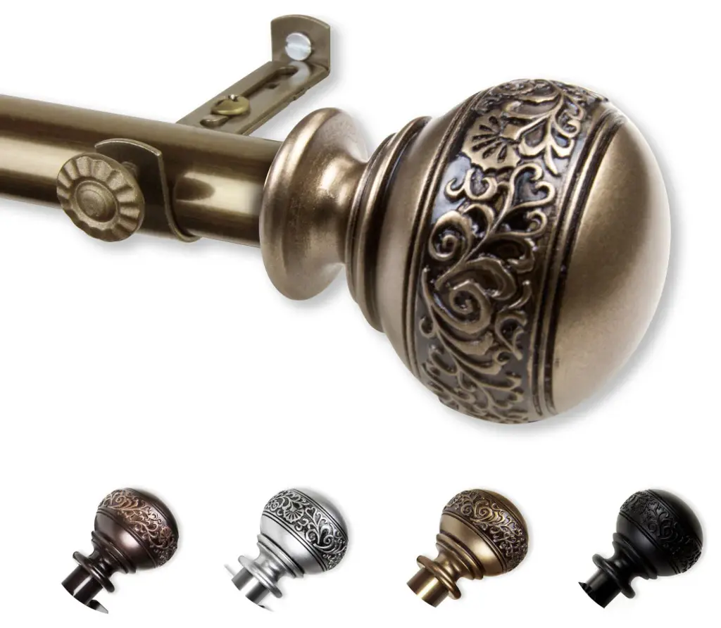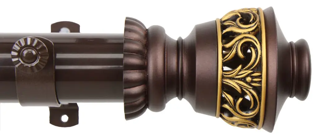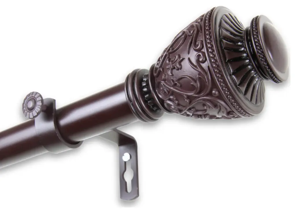 Caliendra Curtain Rod 3/4 inch dia. 48-84" - CocoaCompliment your room with 13/16 inch adjustable single rod with elegant finial design and highest quality drapery hardware with variety of color length options. Matching double rods, triple rods and holdback pairs are available and sold separately.Includes one 13/16 in. dia. single rod, 3 brackets and mounting hardwareRod projection: 2.875 in.Steel rod and resin finialRod diameter: 13/16"Finial measurement: 2-3/4"W x 2-1/2"H x 2-1/2"DRod length: 48-84 inchColor: CocoaGrouped by Length: 48-84 inchGrouped by Colour: Cocoa