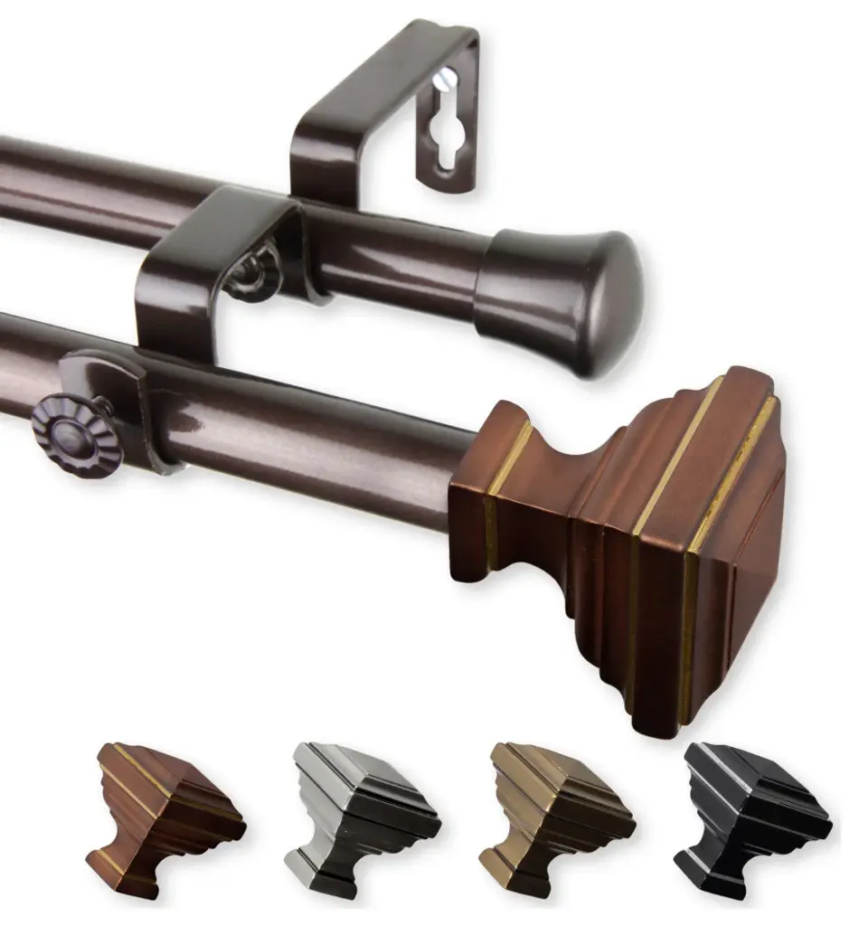 Presenting the newly designed faux wood curtain rod set. Give your window treatment a natural look with this 1 inch diameter rod, beautifully complimenting any window. Includes telescoping steel pole, mounting hardware, brackets, and 2 finials Projection: 3.625" Finial measurement: 1.125" W x 1.5" H x 1.5" D