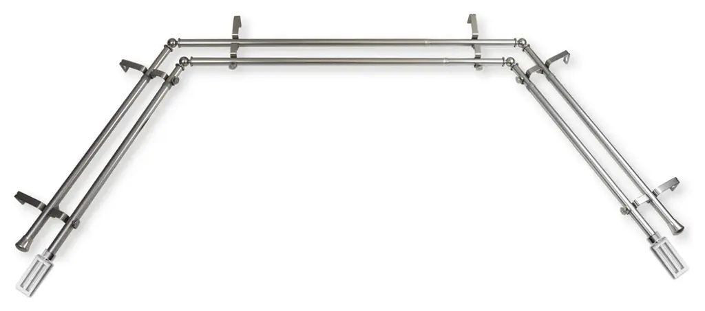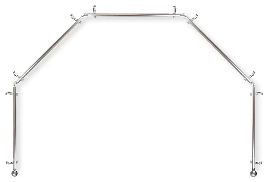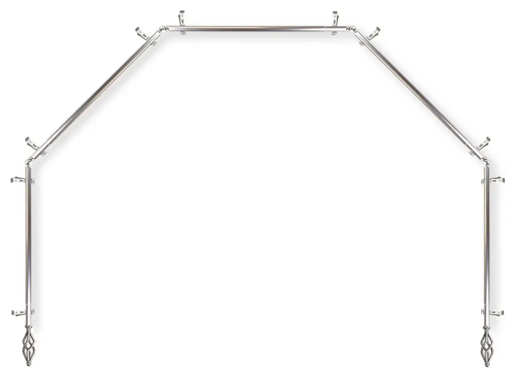 Our Multi Sided Bay Window Rod are the perfect way to decorate a multi-sided bay window with a stylist touch not often found. Offered in 3 different variations, 4, 5 and 6-sided rods can be used for multi window and bay windows. Rods connect using our corner connector which allows for a nearly 360 rotation.Includes four 13/16 inch diameter rods, 2 finials, 3 corner connectors, and mounting hardware. Rod Projection: 2.875 inchFinial Measurement: 2-1/2 inch W X 1-1/8 inch H x 1-1/8 inch DEach rod extends from 28-48 inchSteel Rod and Resin Finial Instruction Included