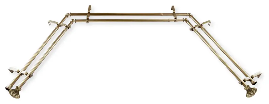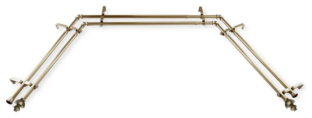 Cedar 13/16" Bay Window Double Curtain Rod, Antique Brass