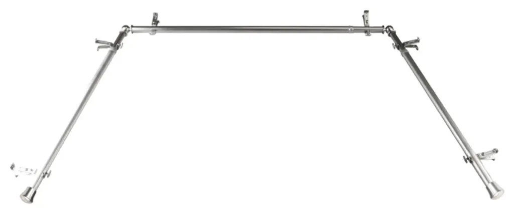 Add a modern touch to your bay windows with our new 13/16 inch diameter Doouble Bay Window Curtain Rods. Compliment your 3 part bay window with a high quality rod featuring unique finials. Each side of this telescoping rod is adjustable from 20 to 36 inches and the center piece adjusts from 38 to 72 inches. This Bay Rod is also available as a single curtain rod.Includes: Bay Window Rod, Finials, and Mounting Hardware.Front Rod projection: 6.375 inch Back Rod projection: 3.75 inchFinial Measurement: 2-1/2 inch W X 1-1/8 inch H x 1-1/8 inch DCenter rod extends from 38-72 inch Side Rods extend from 20-36 inchSteel Rod and Resin Finial Instruction Included