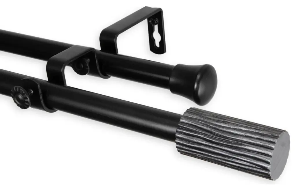 Cedar 13/16 Inch Double Corner Window Curtain Rod, Black, 28-48"