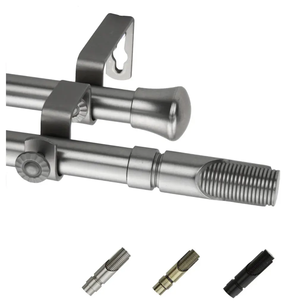 Introduce an elegant touch to your window treatment with this beautiful 13/16" diameter curtain rod set, made of high quality steel rods. Includes telescoping steel pole, mounting hardware, brackets, and 2 finials Projection: 2.875" Finial measurement: 3" W x .875" H x .875" D