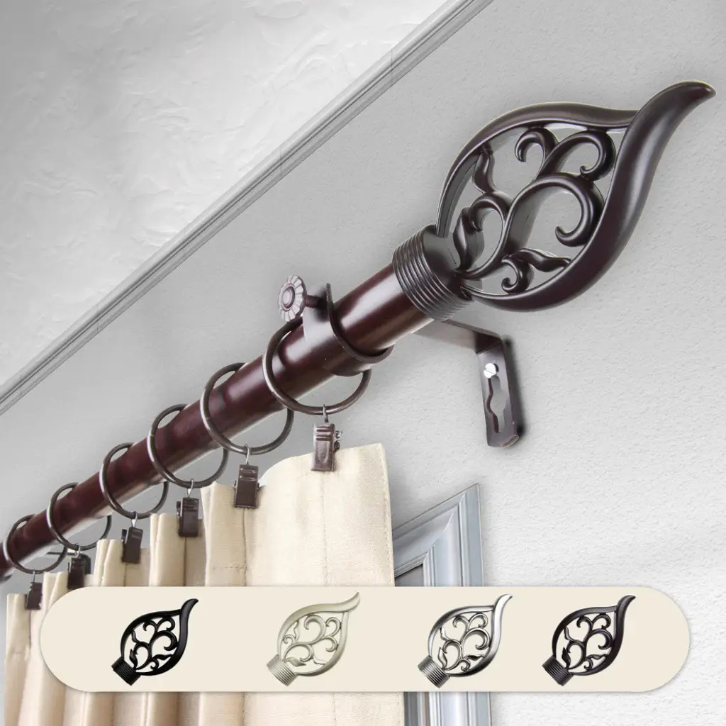 Central Design Products is thrilled to present our top-of-the-line Single Curtain Rods, the ultimate addition to any window treatment. Our high-quality rods are crafted with precision to provide a sleek and modern look to your home decor. Each set includes a single curtain rod, finials, sturdy mounting brackets, and all necessary mounting hardware. The elegant color of our curtain rods adds a touch of sophistication to your space. Upgrade your window treatment with Central Design Products'' Single Curtain Rods today! Includes 1 curtain rod of 1" diameter, finials, mounting brackets, and mounting hardware. Size: 120-170" Projection: 3.625" Rod Diameter: 1" Material: Steel