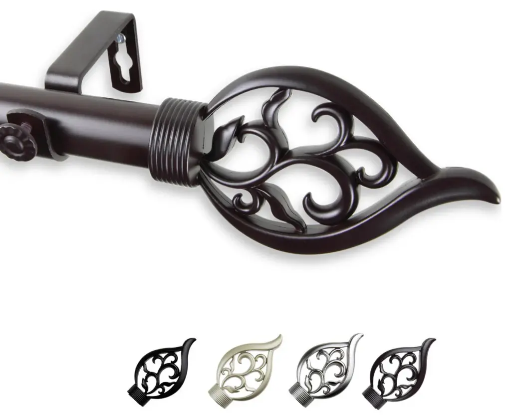 Central Design Products is thrilled to present our top-of-the-line Single Curtain Rods, the ultimate addition to any window treatment. Our high-quality rods are crafted with precision to provide a sleek and modern look to your home decor. Each set includes a single curtain rod, finials, sturdy mounting brackets, and all necessary mounting hardware. The elegant color of our curtain rods adds a touch of sophistication to your space. Upgrade your window treatment with Central Design Products'' Single Curtain Rods today! Includes 1 curtain rod of 1" diameter, finials, mounting brackets, and mounting hardware. Size: 48-84" Projection: 3.625" Rod Diameter: 1" Material: Steel