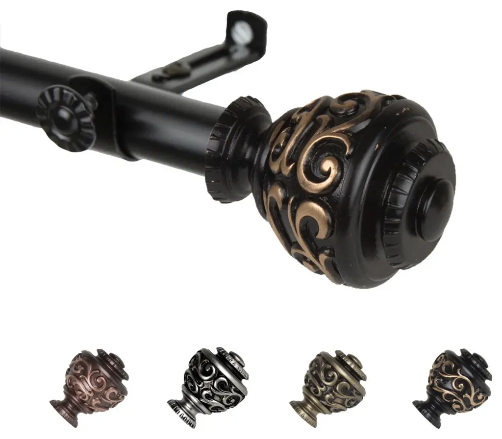 Includes: 1" curtain rod, finials, mounting hardware. Projection: 3.625" Finials Measure: 3" x 2.25" x 2.25"