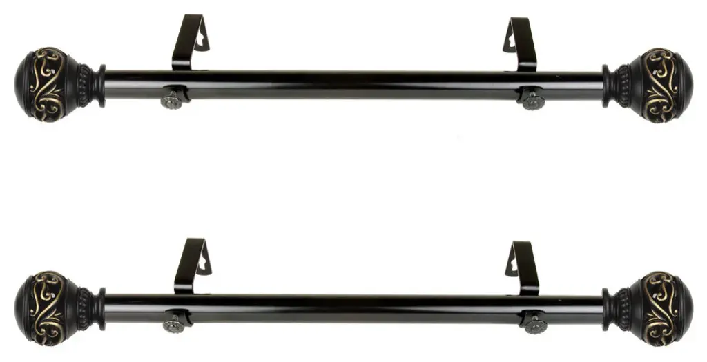 This side mount curtain rod will add alluring style and refined touch to your window treatment and home decor.Includes two 1" diameter telescoping 12-20 inches rod, four finials, four side mount brackets and mounting hardware.Finial Measurement: 3-3/4"W x 2-1/2"H x 2-1/2"D.Bracket Projection: 3.625 inches.Installation instructions included.Steel Rod and Resin Finials