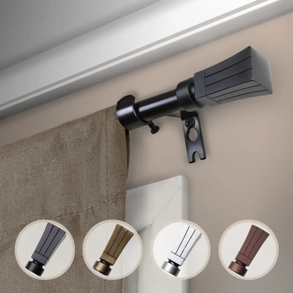 Central Design Products is thrilled to present our top-of-the-line Single Curtain Rods, the ultimate addition to any window treatment. Our high-quality rods are crafted with precision to provide a sleek and modern look to your home decor. Each set includes one 5/8" diameter curtain rod, sturdy mounting brackets, and all necessary mounting hardware. With a projection of 2.75" and a rod diameter of 5/8", our steel rods are built to last. The elegant color of our curtain rods adds a touch of sophistication to your space. Upgrade your window treatment with Central Design Products'' Single Curtain Rods today! Includes 1 curtain rod of 5/8" diameter, finials, mounting brackets, and mounting hardware. Size: 84-120" Projection: 2.75" Rod Diameter: 5/8" Material: Steel Color: Black