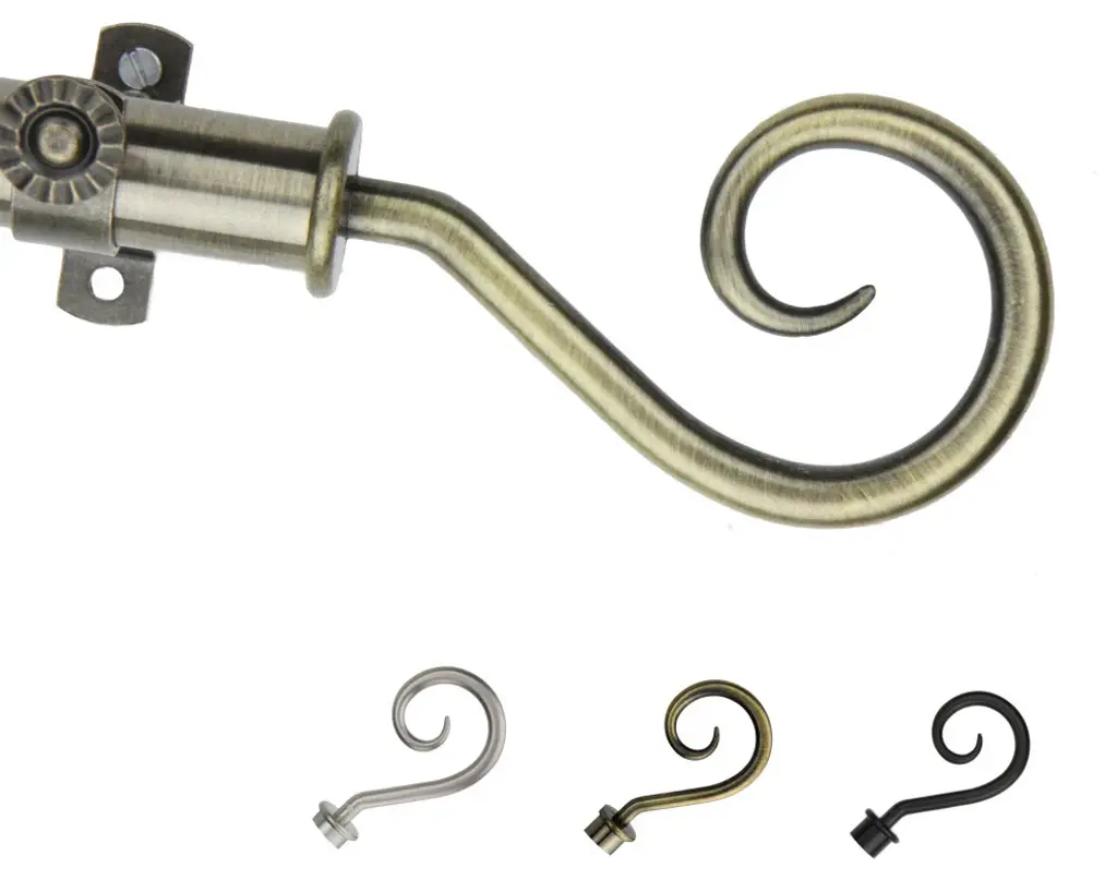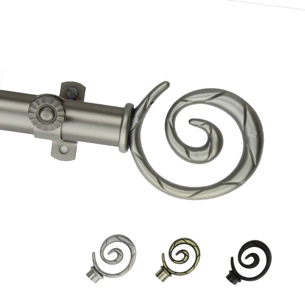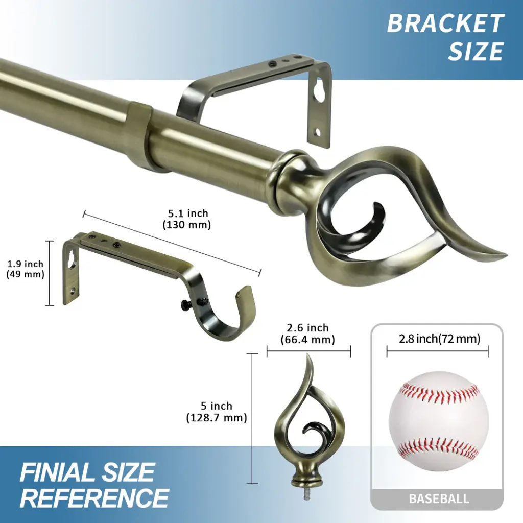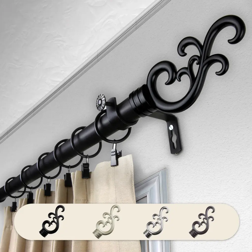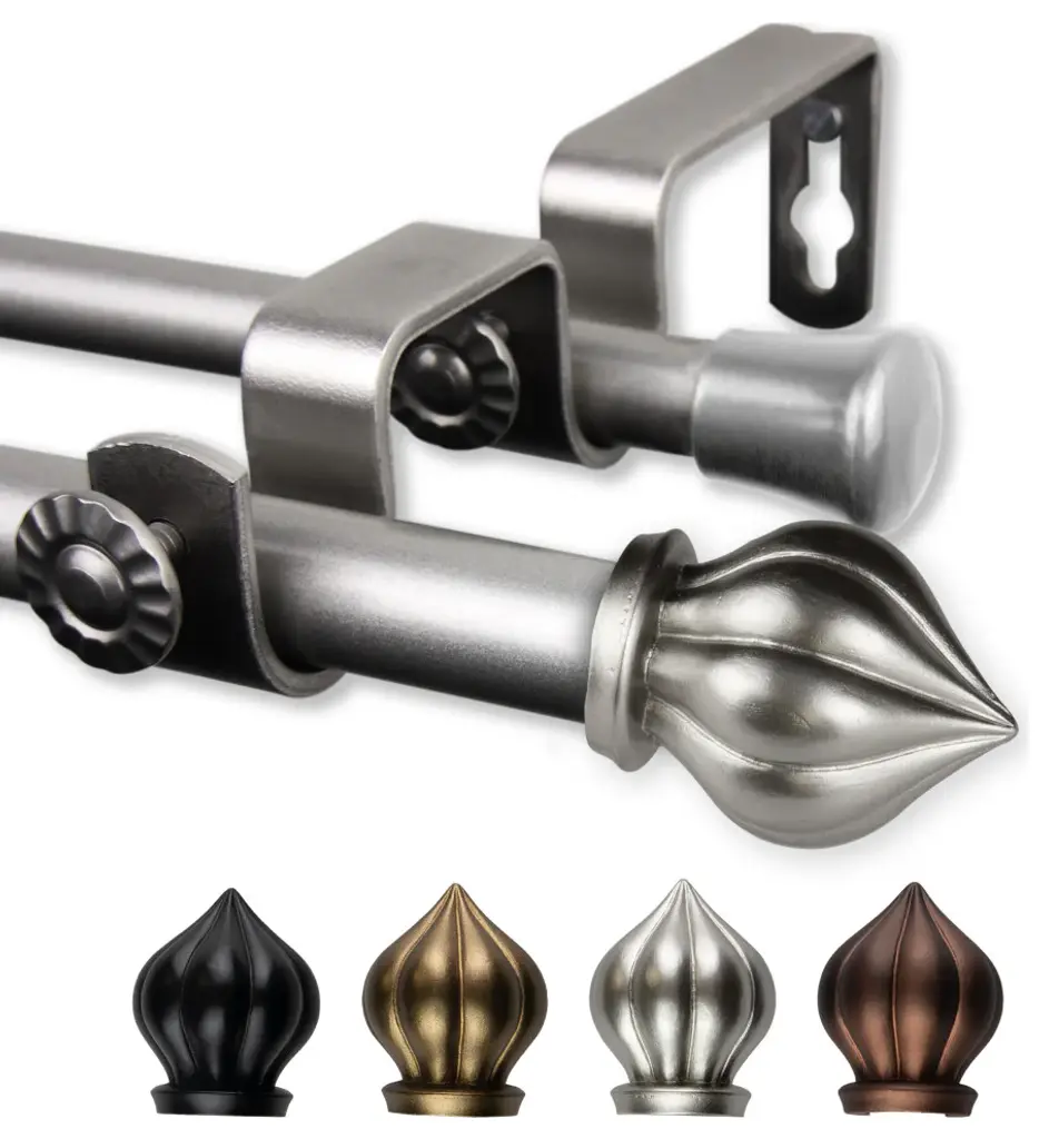 Introduce an elegant touch to your window treatment with this beautiful 13/16" diameter curtain rod set, made of high quality steel rods. Includes telescoping steel pole, mounting hardware, brackets, and 2 finials Projection: 2.875" Finial measurement: 4.125" W x 2.5" H x .25" D