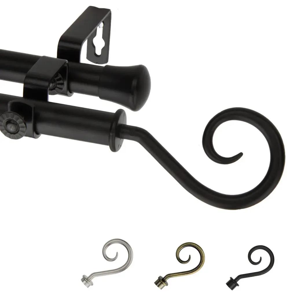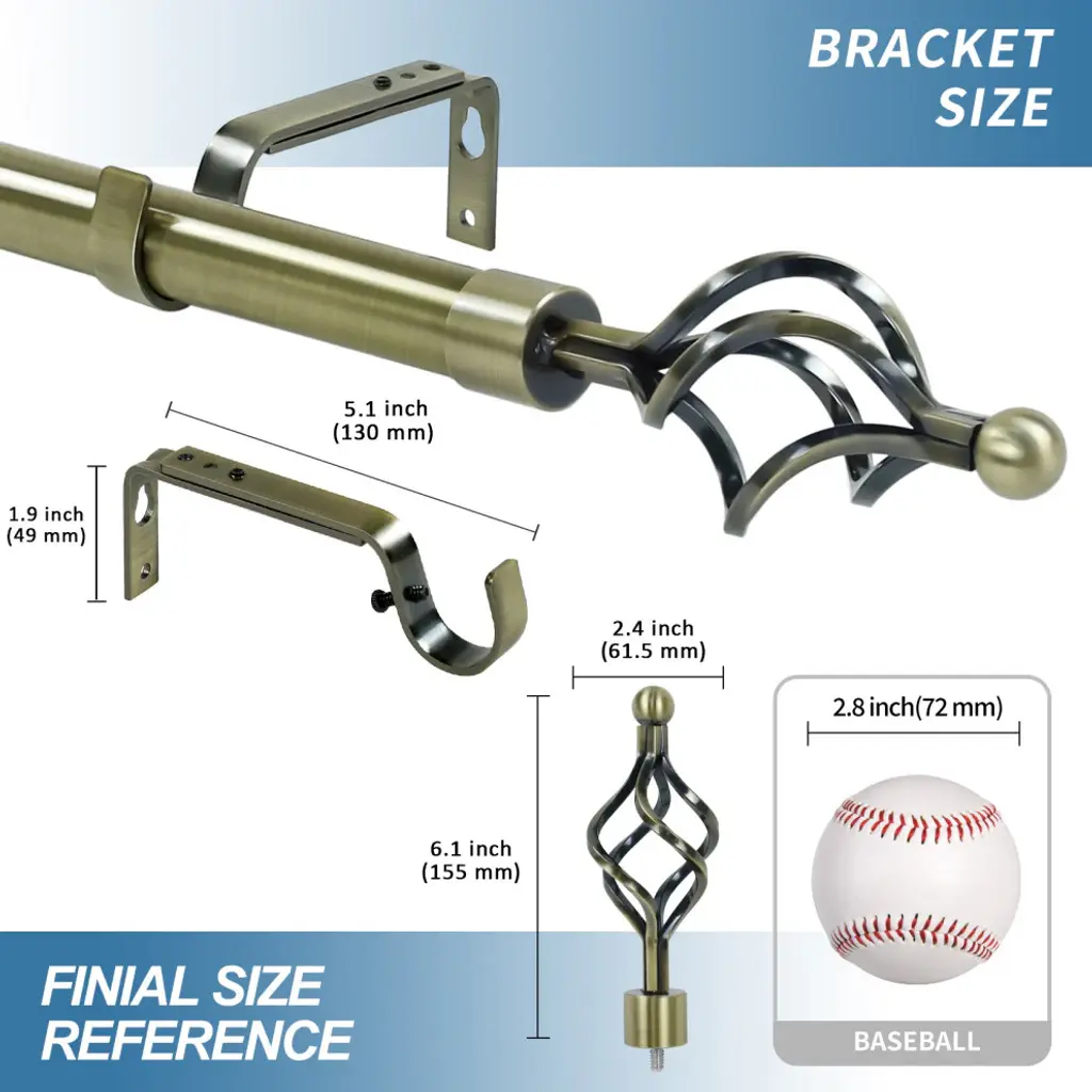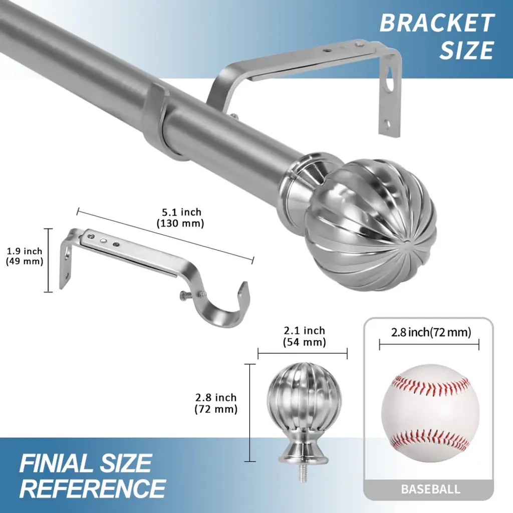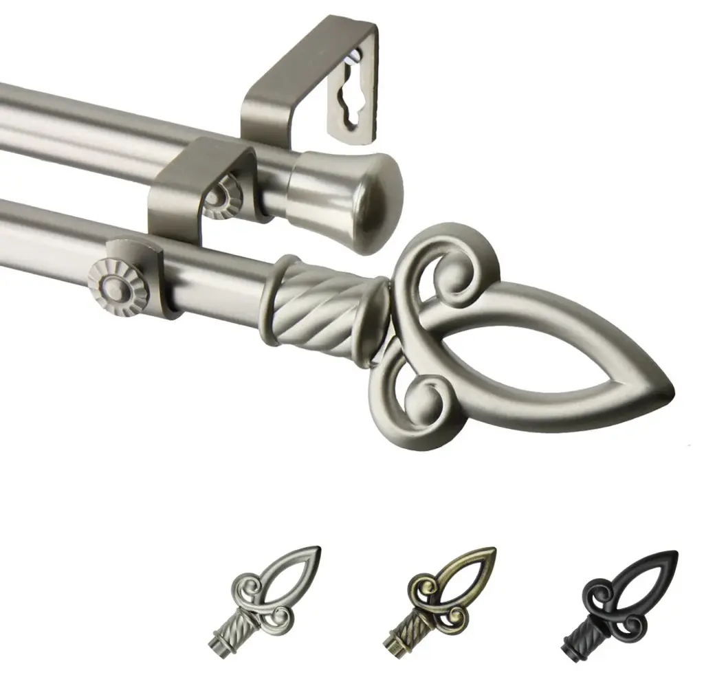 Introduce an elegant touch to your window treatment with this beautiful 13/16" diameter double curtain rod set, made of high quality steel rods. Includes 2 telescoping steel pole, mounting hardware, brackets, and 2 finials Projection: 2.875" Finial measurement: 4.125" W x 2.5" H x .25" D