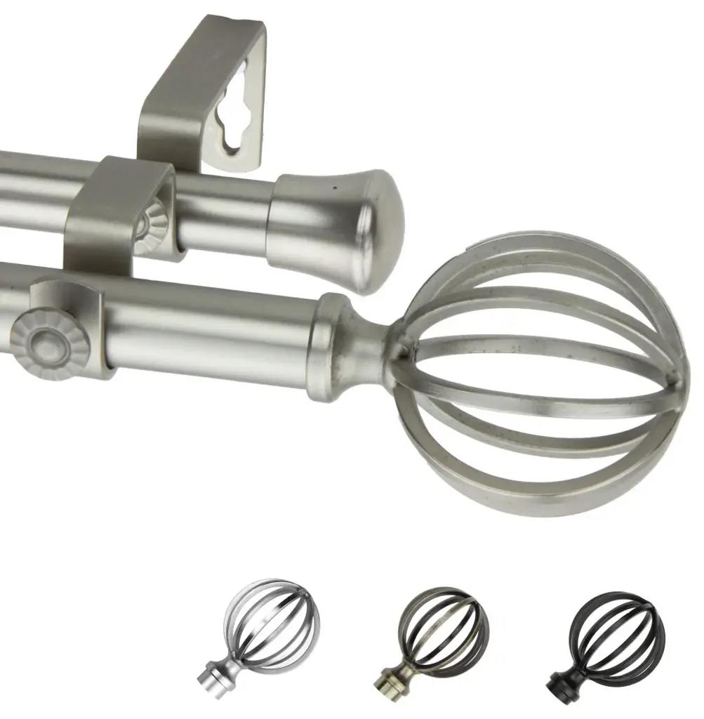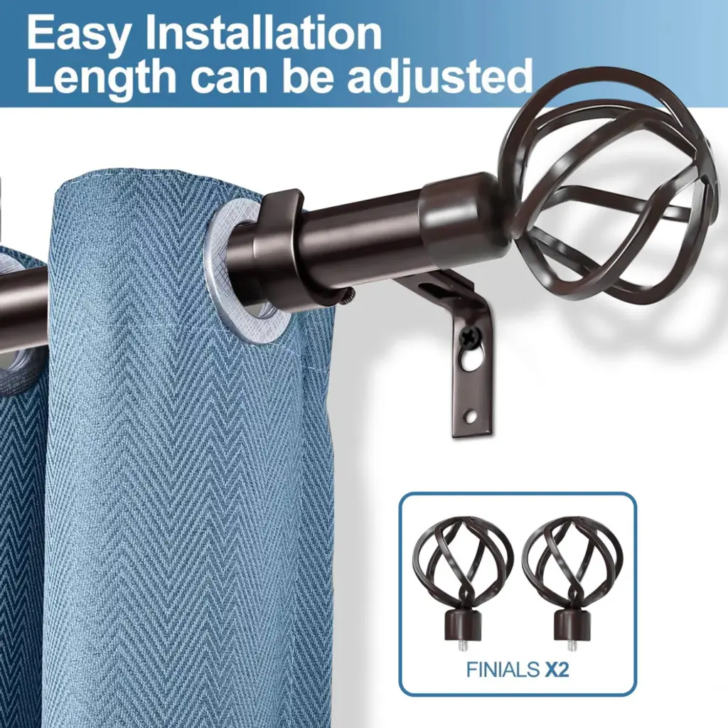 Introduce an elegant touch to your window treatment with this beautiful 13/16" diameter curtain rod set, made of high quality steel rods. Includes telescoping steel pole, mounting hardware, brackets, and 2 finials Projection: 2.875" Finial measurement: 3.25" W x 2.625" H x 2.625" D