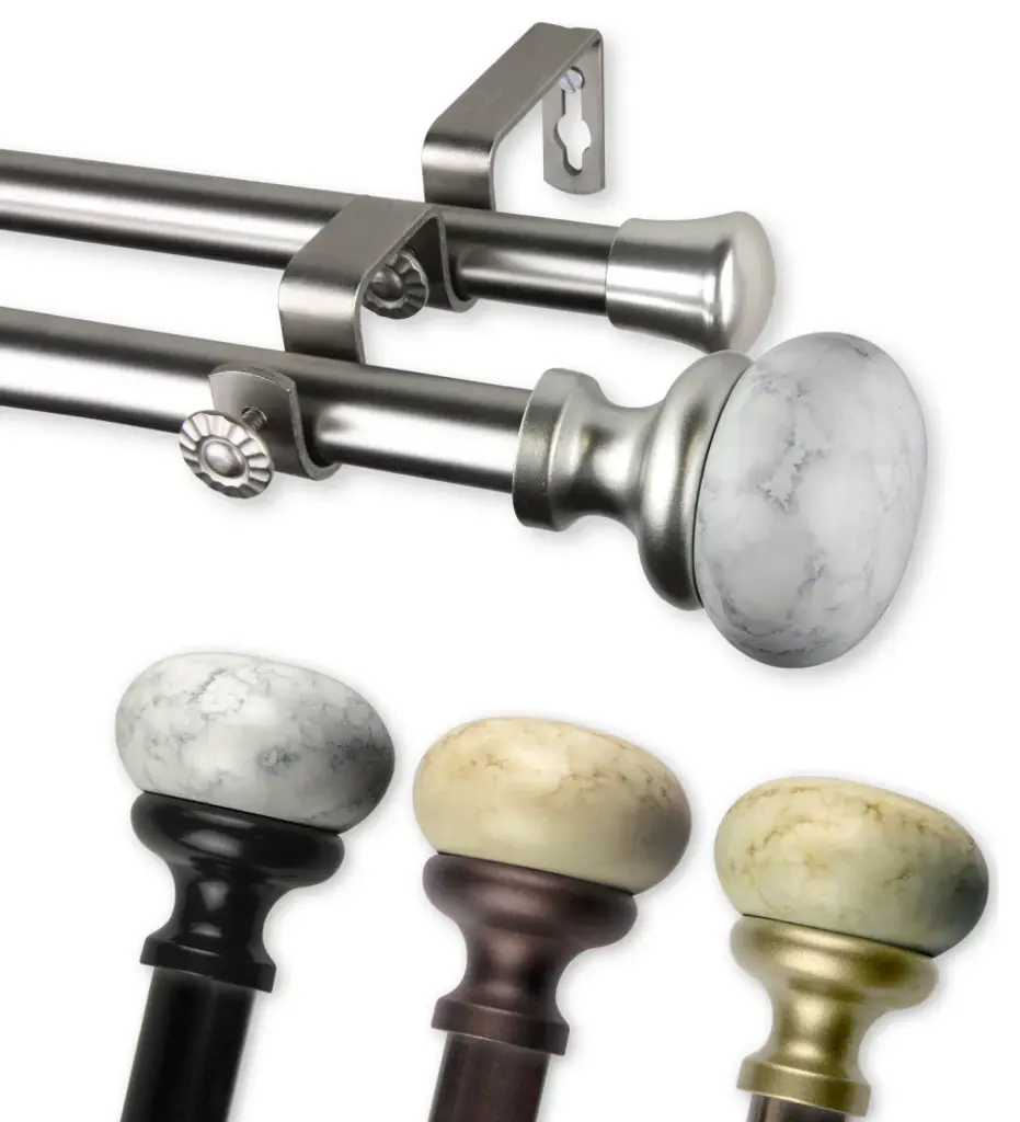 Central Design Products presents the perfect enhancement to your window treatment with high-end quality Double Curtain Rods. Designed to add a modern touch to any window. Includes 2 curtain rods of 13/16" diameter, 3 brackets, and mounting hardware. Projection: 6.375" Front rod to wall, 3.75" Back rod to wall Rod Diameter: 13/16" Material: Steel Color: Black