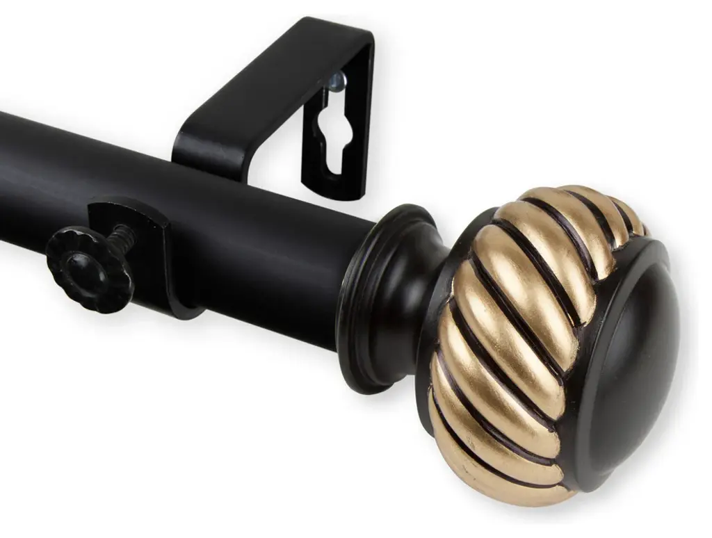 Cruller 1" Double Curtain Rod, Black, Black, 120"-170"