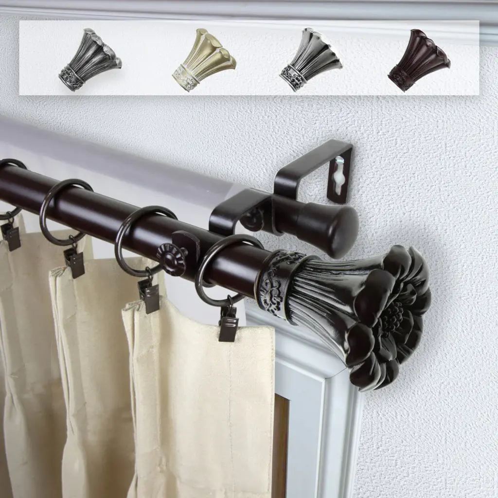 Central Design Products is thrilled to present our top-of-the-line Single Curtain Rods, the ultimate addition to any window treatment. Our high-quality rods are crafted with precision to provide a sleek and modern look to your home decor. Each set includes a single curtain rod, finials, sturdy mounting brackets, and all necessary mounting hardware. The elegant color of our curtain rods adds a touch of sophistication to your space. Upgrade your window treatment with Central Design Products'' Single Curtain Rods today! Includes 1 curtain rod of 1" diameter, finials, mounting brackets, and mounting hardware. Size: 48-84" Projection: 3.625" Rod Diameter: 1" Material: Steel