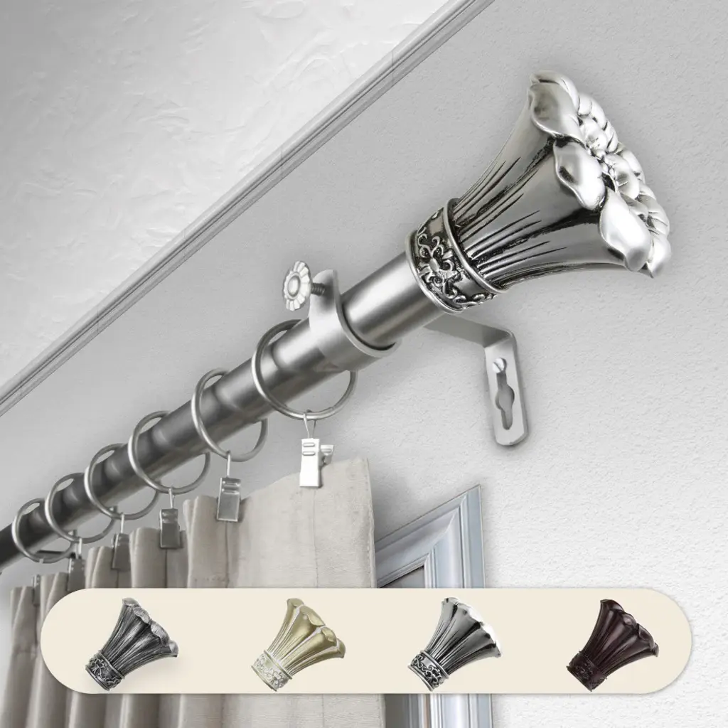 Central Design Products is thrilled to present our top-of-the-line Single Curtain Rods, the ultimate addition to any window treatment. Our high-quality rods are crafted with precision to provide a sleek and modern look to your home decor. Each set includes a single curtain rod, finials, sturdy mounting brackets, and all necessary mounting hardware. The elegant color of our curtain rods adds a touch of sophistication to your space. Upgrade your window treatment with Central Design Products'' Single Curtain Rods today! Includes 1 curtain rod of 1" diameter, finials, mounting brackets, and mounting hardware. Size: 48-84" Projection: 3.625" Rod Diameter: 1" Material: Steel