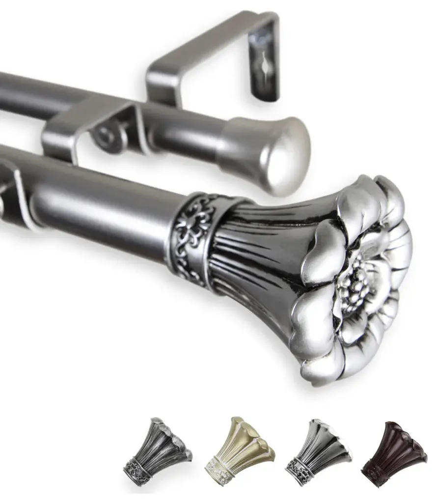 Central Design Products is thrilled to present our top-of-the-line Double Curtain Rods, the ultimate addition to any window treatment. Our high-quality rods are crafted with precision to provide a sleek and modern look to your home decor. Each set includes a double curtain rod, finials, sturdy mounting brackets, and all necessary mounting hardware. The elegant color of our curtain rods adds a touch of sophistication to your space. Upgrade your window treatment with Central Design Products'' Double Curtain Rods today! Includes 1 curtain rod of 1" diameter, one curtain rod of 13/16" diameter, finials, endcaps, mounting brackets, and mounting hardware. Size: 48-84" Projection: 6.75" Front Rod Diameter: 1" / Back Rod Diameter: 13/16" Material: Steel