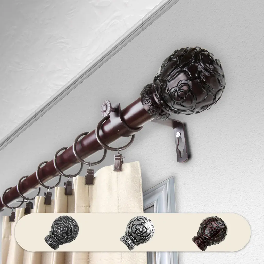 Central Design Products is thrilled to present our top-of-the-line Single Curtain Rods, the ultimate addition to any window treatment. Our high-quality rods are crafted with precision to provide a sleek and modern look to your home decor. Each set includes a single curtain rod, finials, sturdy mounting brackets, and all necessary mounting hardware. The elegant color of our curtain rods adds a touch of sophistication to your space. Upgrade your window treatment with Central Design Products'' Single Curtain Rods today! Includes 1 curtain rod of 1" diameter, finials, mounting brackets, and mounting hardware. Size: 48-84" Projection: 3.625" Rod Diameter: 1" Material: Steel