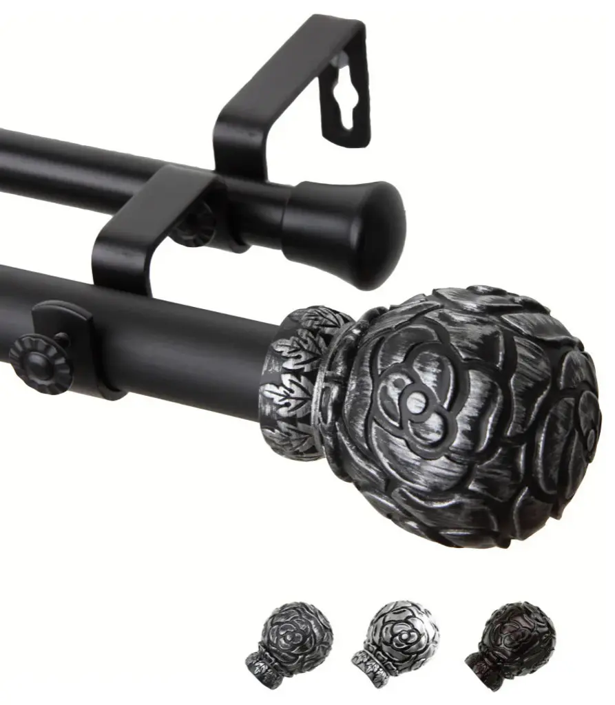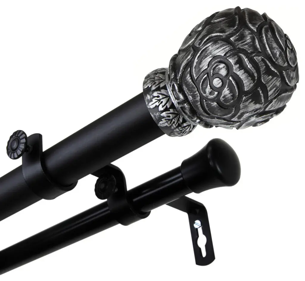 Central Design Products is thrilled to present our top-of-the-line Double Curtain Rods, the ultimate addition to any window treatment. Our high-quality rods are crafted with precision to provide a sleek and modern look to your home decor. Each set includes a double curtain rod, finials, sturdy mounting brackets, and all necessary mounting hardware. The elegant color of our curtain rods adds a touch of sophistication to your space. Upgrade your window treatment with Central Design Products'' Double Curtain Rods today! Includes 1 curtain rod of 1" diameter, one curtain rod of 13/16" diameter, finials, endcaps, mounting brackets, and mounting hardware. Size: 66-120" Projection: 6.75" Front Rod Diameter: 1" / Back Rod Diameter: 13/16" Material: Steel