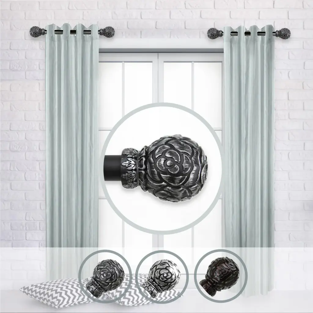 Central Design Products is thrilled to present our side curtain rods, which will add alluring style and refined touch to your window treatment and home decor. Add a nice touch to each side of your beautiful window to apply a modern and unique look in your living space. Includes two 1" diameter telescoping rods, four finials, four side mount brackets and mounting hardware. Size: 12-20" Projection: 3.625" Steel Rod