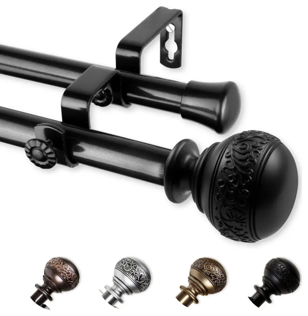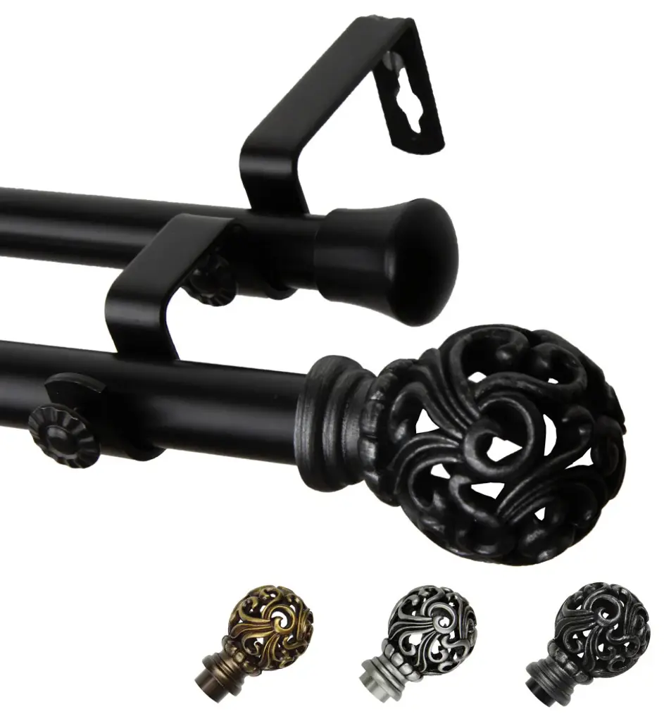 Central Design Products presents the perfect enhancement to your window treatment with high-end quality Double Curtain Rods. Designed to add a modern touch to any window. Includes 2 curtain rods of 13/16" diameter, 4 brackets, and mounting hardware. Projection: 6.375" Front rod to wall, 3.75" Back rod to wall Rod Diameter: 13/16" Material: Steel Color: Black