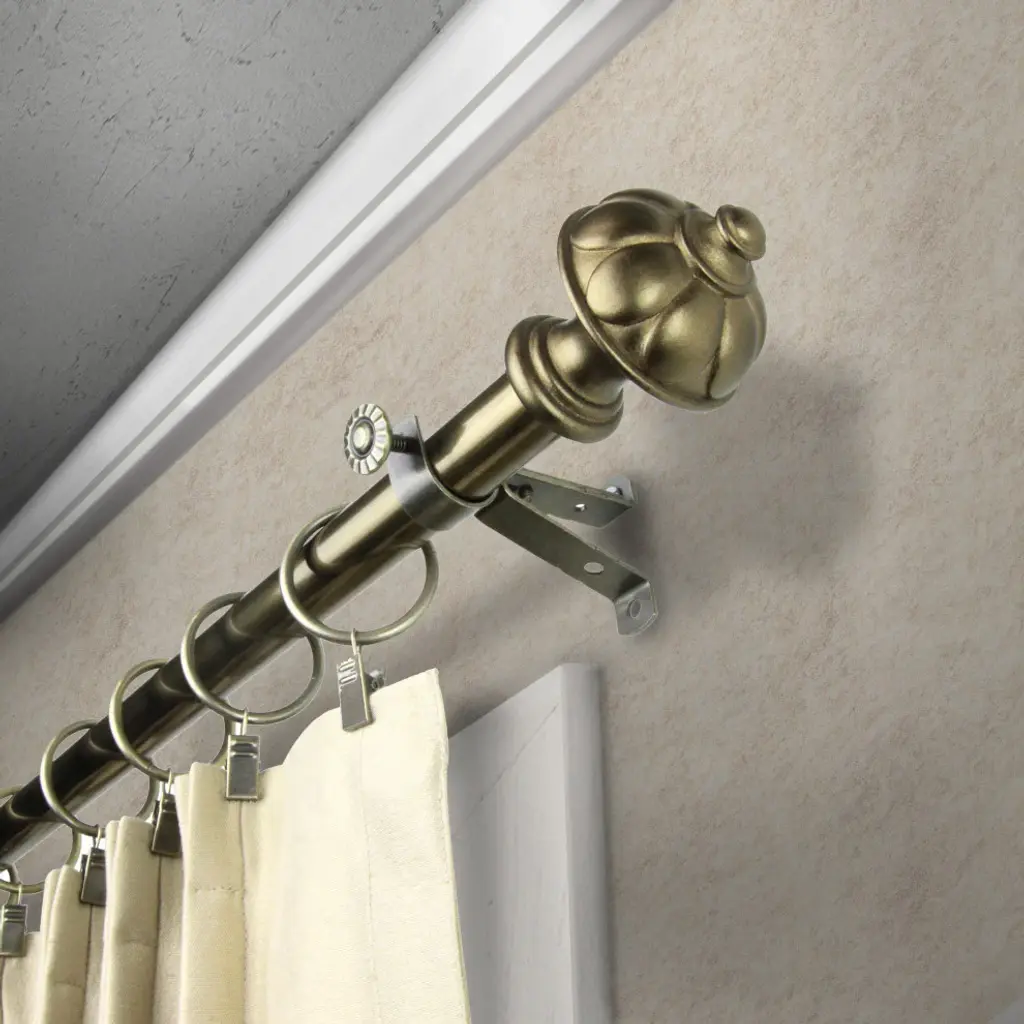 Introduce an elegant touch to your window treatment with this beautiful 13/16" diameter curtain rod set, made of high quality steel rods. Includes telescoping steel pole, mounting hardware, brackets, and 2 finials Projection: 2.875" Finial measurement: 2.5" W x 2" H x 2" D