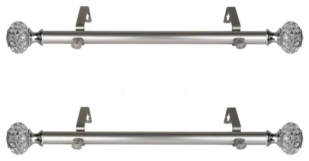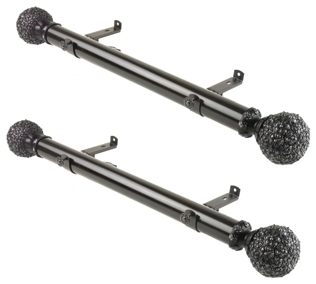 This side mount curtain rod will add alluring style and refined touch to your window treatment and homeIncludes two 1.5" diameter non-telescoping 18 inch rod, four finials, four side mount brackets and mounting hardware Finial Measurement: 3.8" W x 2.9" H x 2.9" DBracket Projection: 4.5 inchInstallation instructions includedSteel Rod and Resin Finial