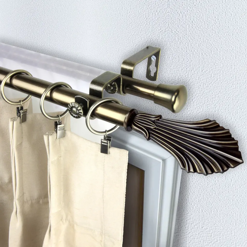 Introduce an elegant touch to your window treatment with this beautiful 13/16" diameter double curtain rod set, made of high quality steel rods. Includes 2 telescoping steel pole, mounting hardware, brackets, and 2 finials Projection: 2.875" Finial measurement: 5" W x 2.5" H x .125" D