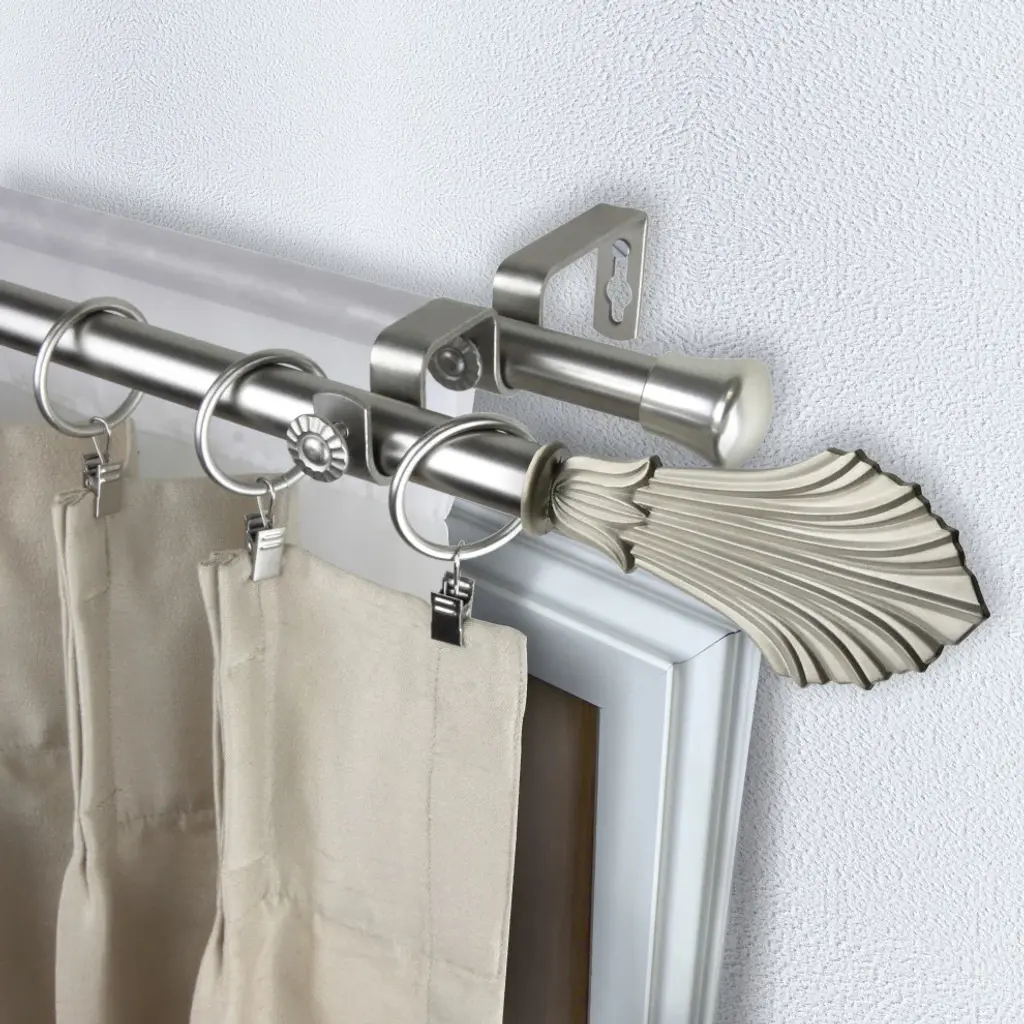 Introduce an elegant touch to your window treatment with this beautiful 13/16" diameter double curtain rod set, made of high quality steel rods. Includes 2 telescoping steel pole, mounting hardware, brackets, and 2 finials Projection: 2.875" Finial measurement: 5" W x 2.5" H x .125" D