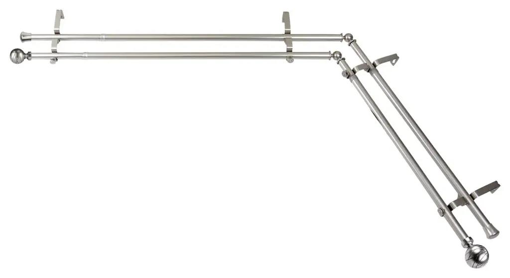 Etched Corner Window Double 13/16" Curtain Rod, Satin Nickel, 120-170"