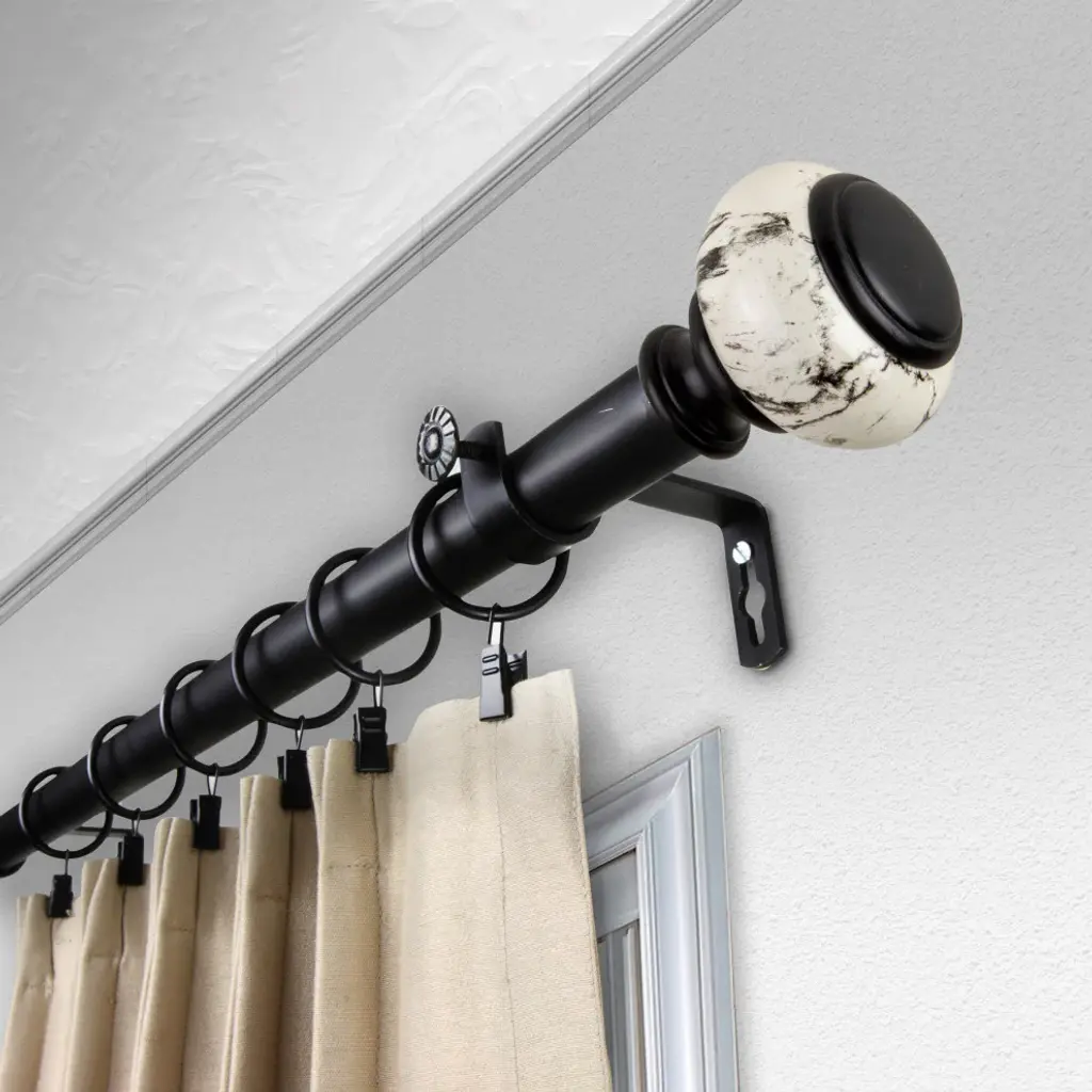 Decorate your window with Central Design Products Curtain Rod. This rod is made of solid steel pole with high quality finials that will add sophisticated touch to your windowIncludes one 160-240 inches telescoping steel pole 5 brackets and 2 finialsFinial Measurement: 2-3/4" W x 2-3/4" H x 3" DProjection: 3.625 inchesRod Diameter: 1 inch