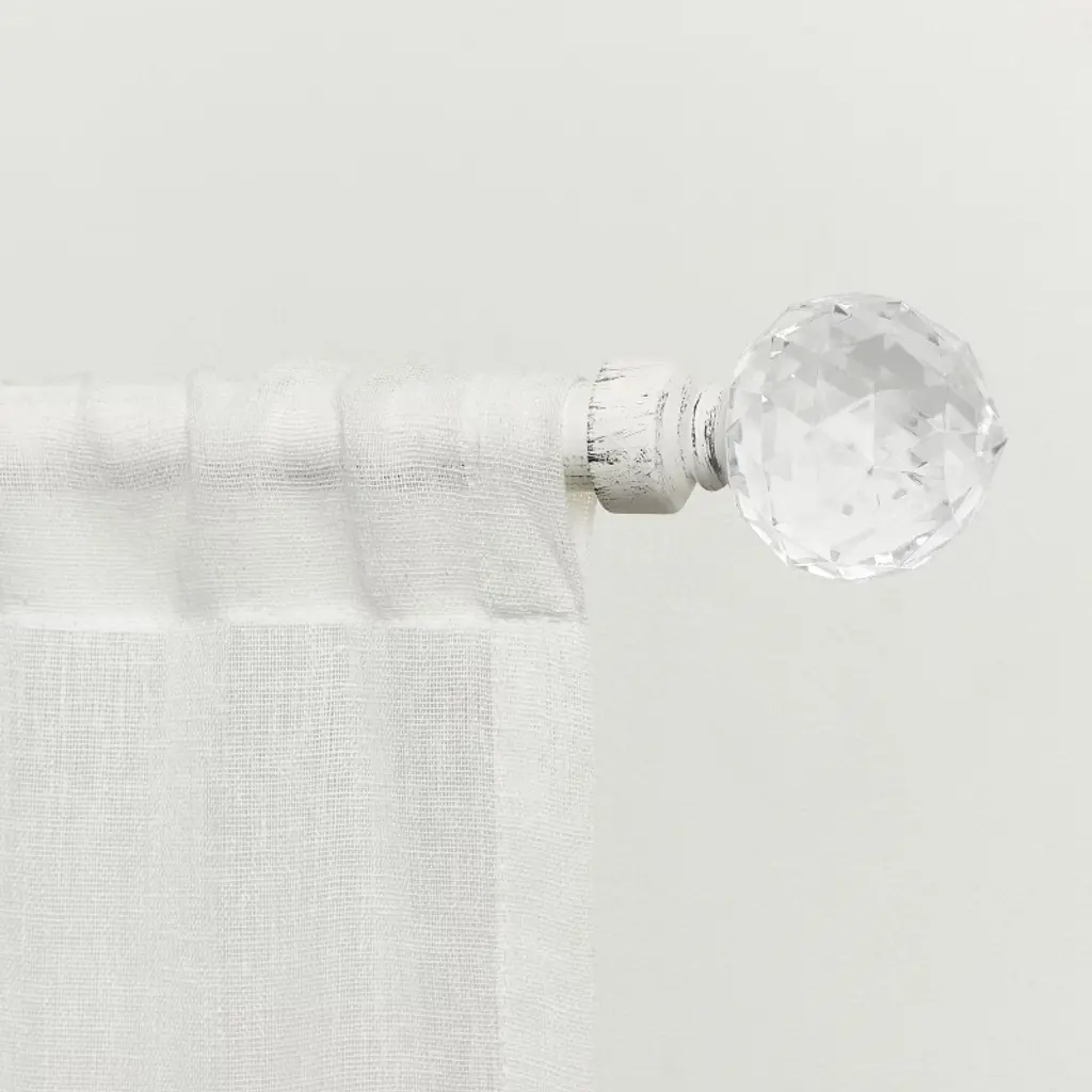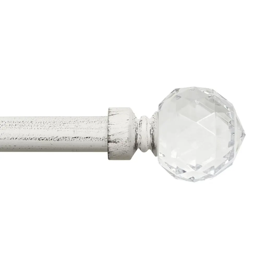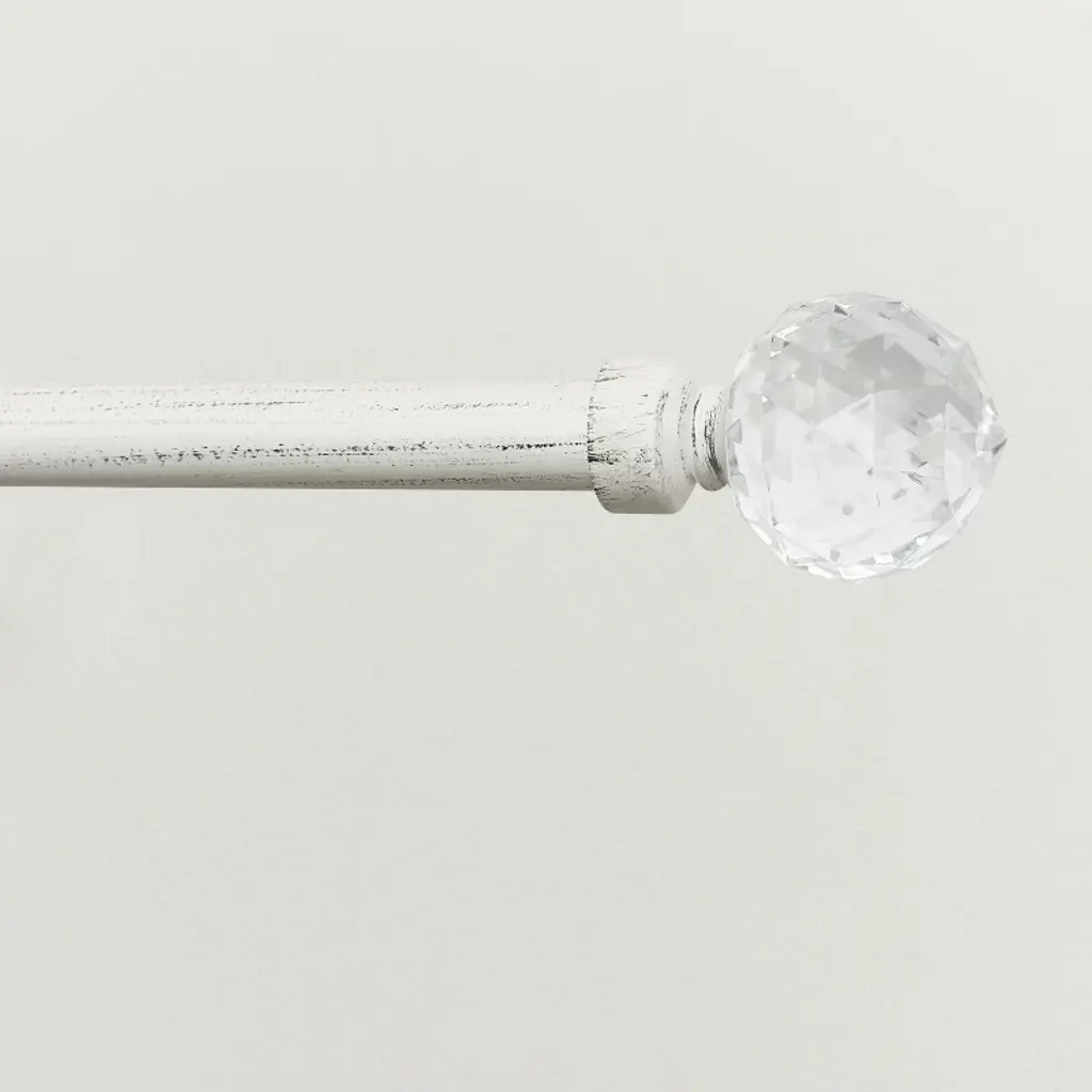 Exclusive Home Crystal Ball 1" Curtain Rod And Coordinating Finial Set, Distressed White, Adjustable 36"-72"