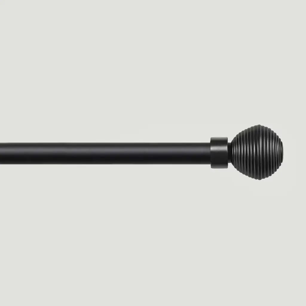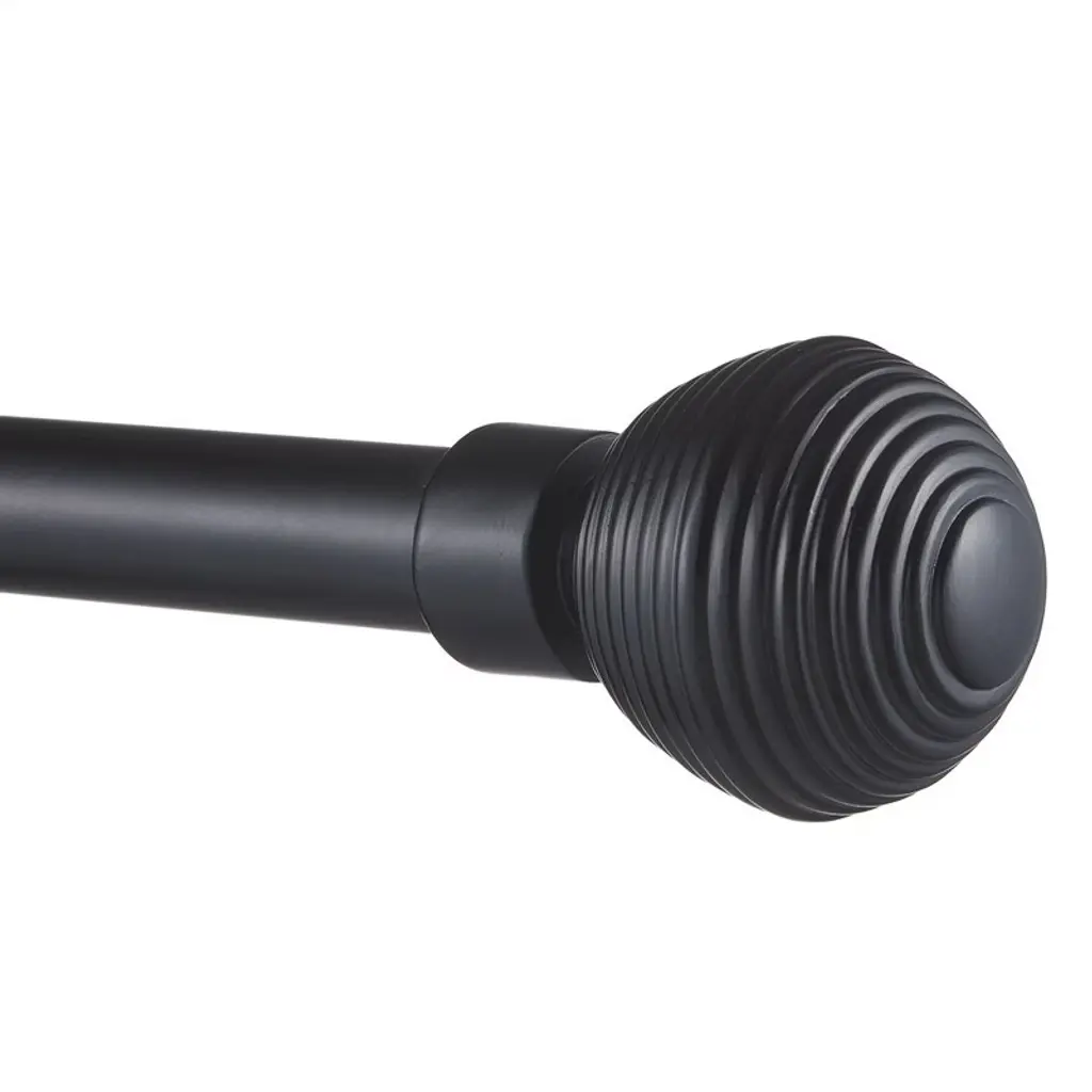 The Exclusive Home Modern Layer curtain rod and finial set offers contemporary style and modern design with sphere-shaped finials that have a raised metal look. The adjustable, iron curtain rod measures 1" diameter and can be used to hang various fabrics and curtain panels including grommet top curtain panels, drapes with rod pockets and back tabs. The curtain rod can support heavier fabrics up to 25 lbs. Mounting hardware, brackets, and instructions are included.