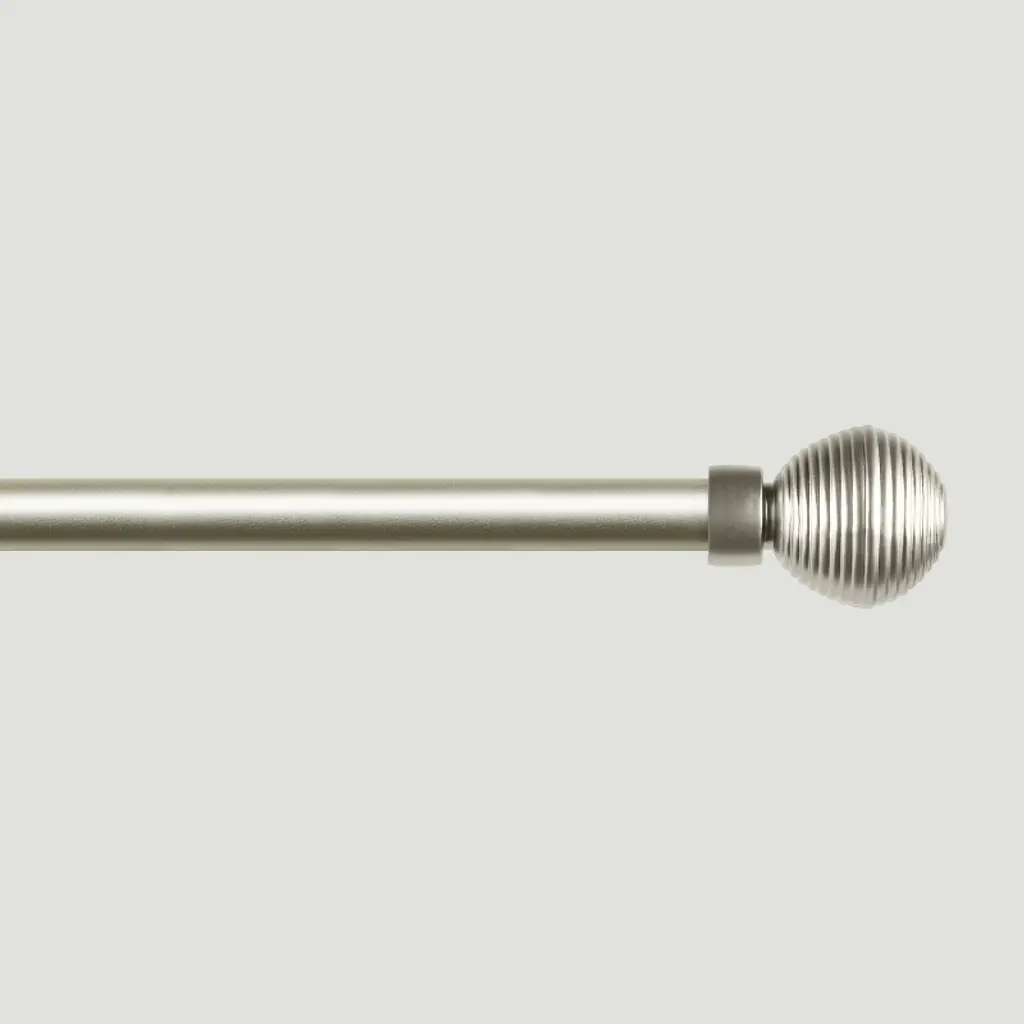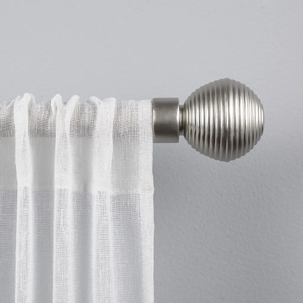 The Exclusive Home Modern Layer curtain rod and finial set offers contemporary style and modern design with sphere-shaped finials that have a raised metal look. The adjustable, iron curtain rod measures 1" diameter and can be used to hang various fabrics and curtain panels including grommet top curtain panels, drapes with rod pockets and back tabs. The curtain rod can support heavier fabrics up to 25 lbs. Mounting hardware, brackets, and instructions are included.