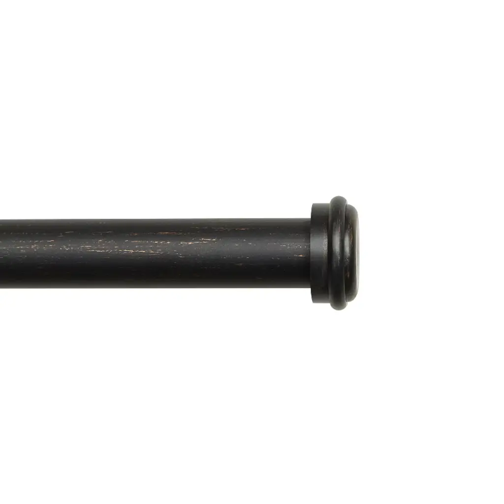 The Topper decorative curtain rod and finial set features a simple, classic style and traditional design with a matte finish iron rod and coordinating wood plastic button end cap finials. This set will provide a visually balanced appearance for your window treatments. The 1.6" diameter x 0.7" long finials will insure that your window curtain panels will remain securely on the rod. The 1" diameter iron adjustable curtain rod is designed to fit a wide range of window widths, and has a sturdy 25 lb. capacity that will support flowing sheers to thermal blackout panels. The 3.5" fixed depth projection bracket provides a gracious amount of space for fabrics to drape perfectly. Accommodates window curtain panels and drapes that are designed with various tops, including: rod pocket, pinch pleat, clip rings, grommets, tab top, or hidden back tab top. Provides an attractive accent to every window treatment in your living room, bed room, bathroom, kitchen, and kids room. Installs easily with included hardware and installation instructions. Sturdy, easy clean, no fuss, wipe clean finish will last for lifetime. This window curtain rod and finial set will add the perfect finish accent to any window treatment and adds a refined style to your home decor.