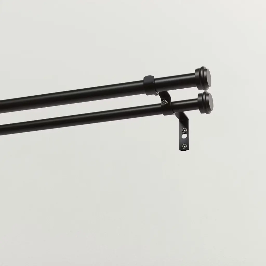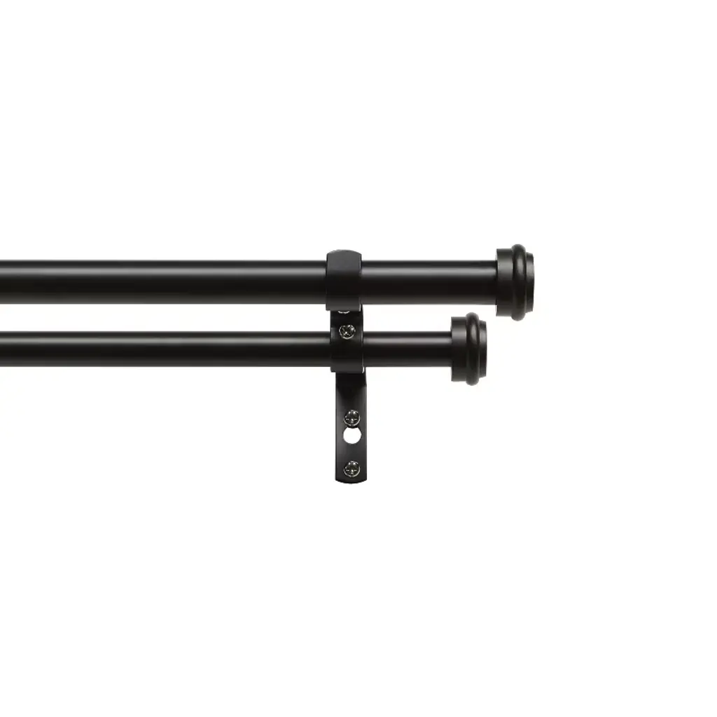 The Exclusive Home Topper double curtain rod and finial set offers simple, classic style for your window decor. The sturdy iron rods can support heavy fabrics up to 25 lbs. The adjustable rods can be used to hang various fabrics and drapes including grommet top curtain panels, drapes with rod pockets and back tabs. Mounting hardware, brackets, and instructions are included.