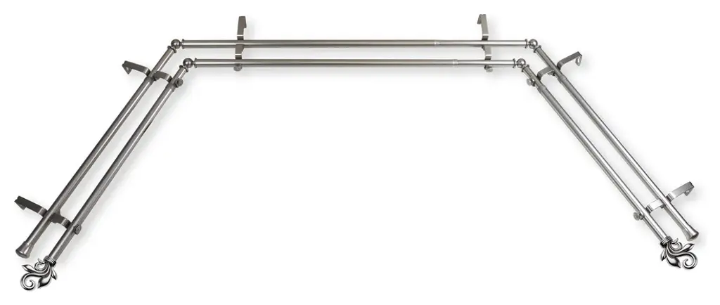 Our Multi Sided Bay Window Rod are the perfect way to decorate a multi-sided bay window with a stylist touch not often found. Offered in 3 different variations, 4, 5 and 6-sided rods can be used for multi window and bay windows. Rods connect using our corner connector which allows for a nearly 360 rotation.Includes six 13/16" diameter rods, 2 finials, 5 corner connectors, and mounting hardwareRod Projection: 2.875"Finial Measurement: 4" W X 3-1/5" H x 2/5" DEach rod extends from 28-48"Steel Rod and Resin Finial Instruction Included