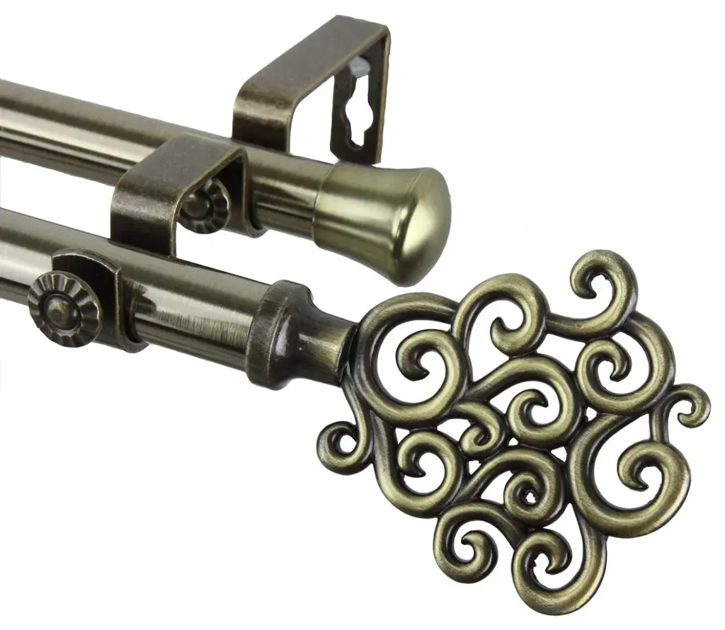 Fabritio 13/16" Double Corner Window Curtain Rod, Antique Brass, 66-120"