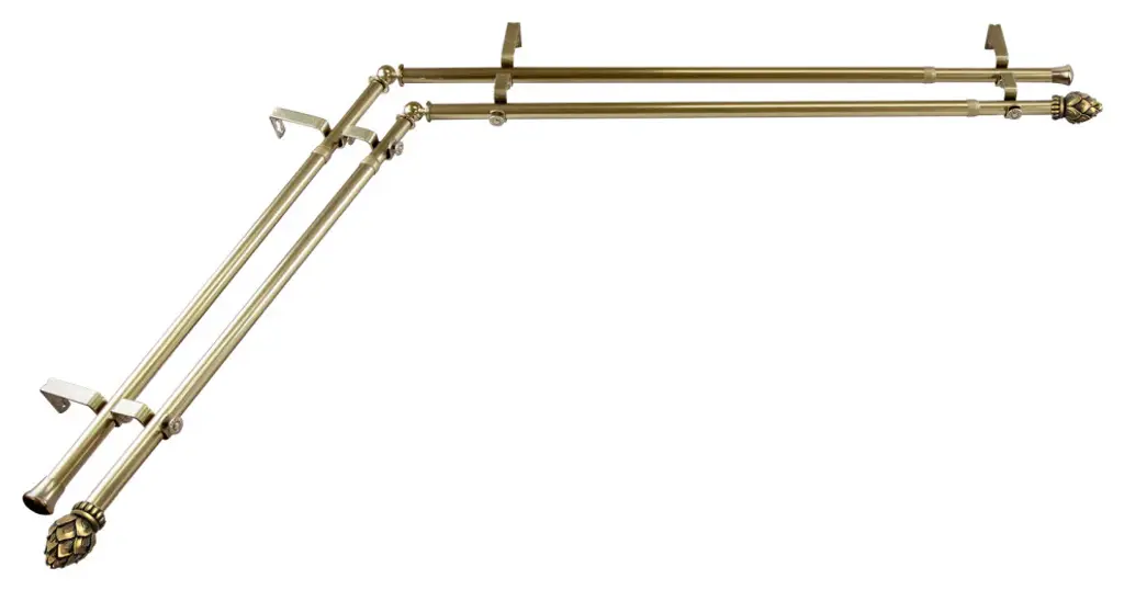 Easily and effortlessly decorate your corner windows with curtains and sheers/valences. 2 sets of two 13/16 in. curtain rods attach via corner ball connector that allows for nearly 360 of rotation. These high quality steel rods are accented with decorative finial end pieces.Includes: four 13/16" in diameter rods, finials, corner connectors, and mounting hardware.Front rod projection: 6.375 in. back rod projection: 3.75 in.Finial Measurement: 5" W X 1-5/8" H x 1-5/8" DSteel Rod and Metal FinialInstallation instructions included
