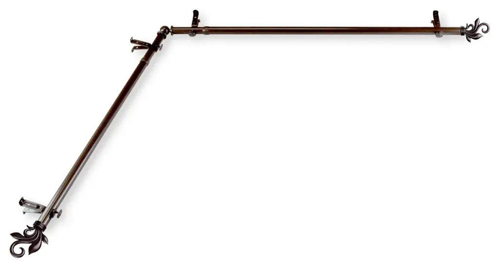 Easily and effortlessly decorate your corner windows with curtains. 1 set of two 13/16" diameter curtain rods attach via corner ball connector that allows for nearly 360 of rotation. These high quality steel rods are accented with decorative finial end pieces.Includes: two 13/16" diameter rods, 2 finials, 1 corner connectors, and mounting hardware.Finial Measurement: 4" W X 3-1/5" H x 2/5" DBracket Projection: 2.875 inchInstallation instructions includedSteel Rod and Metal Finial