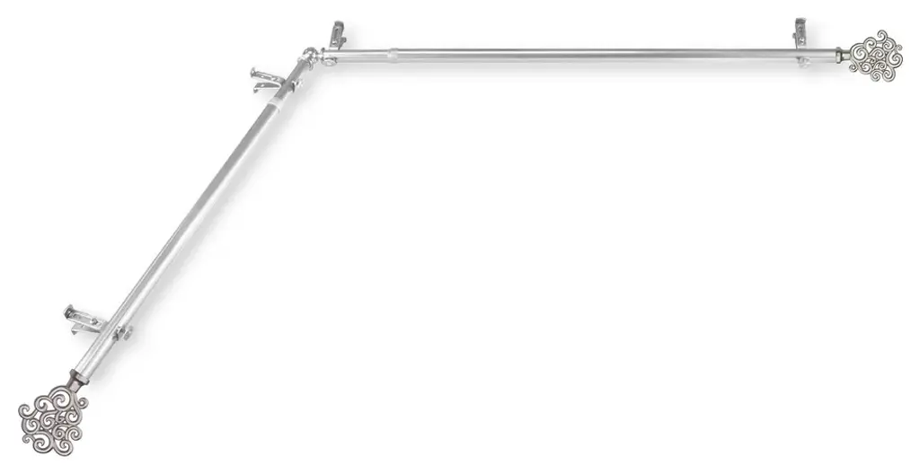 Easily and effortlessly decorate your corner windows with curtains. 1 set of two 13/16" diameter curtain rods attach via corner ball connector that allows for nearly 360 of rotation. These high quality steel rods are accented with decorative finial end pieces.Includes: two 13/16" diameter rods, 2 finials, 1 corner connectors, and mounting hardware.Finial Measurement: 4" W X 3-1/5" H x 2/5" DBracket Projection: 2.875 inchInstallation instructions includedSteel Rod and Metal Finial