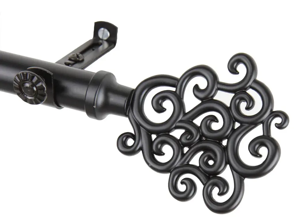Fabritio 13/16 Inch Corner Window Curtain Rod, Black, 28-48"