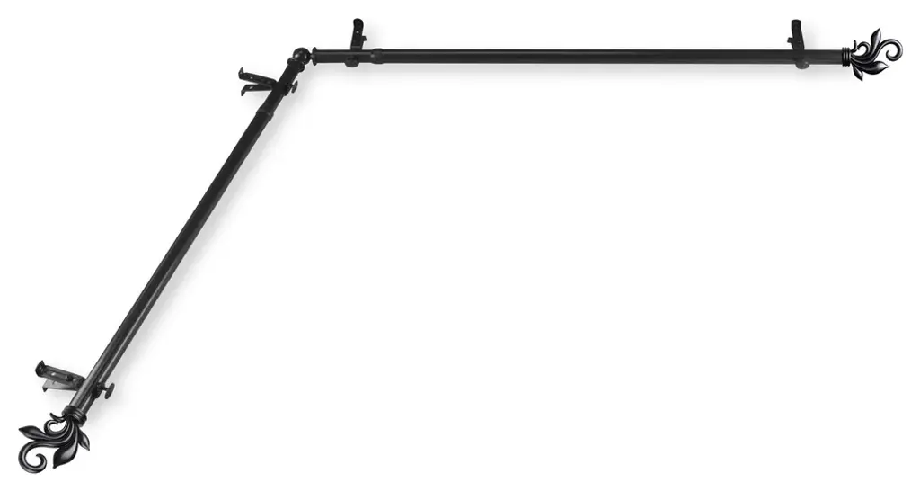 Fabritio 13/16 Inch Corner Window Curtain Rod, Black, 66-120"