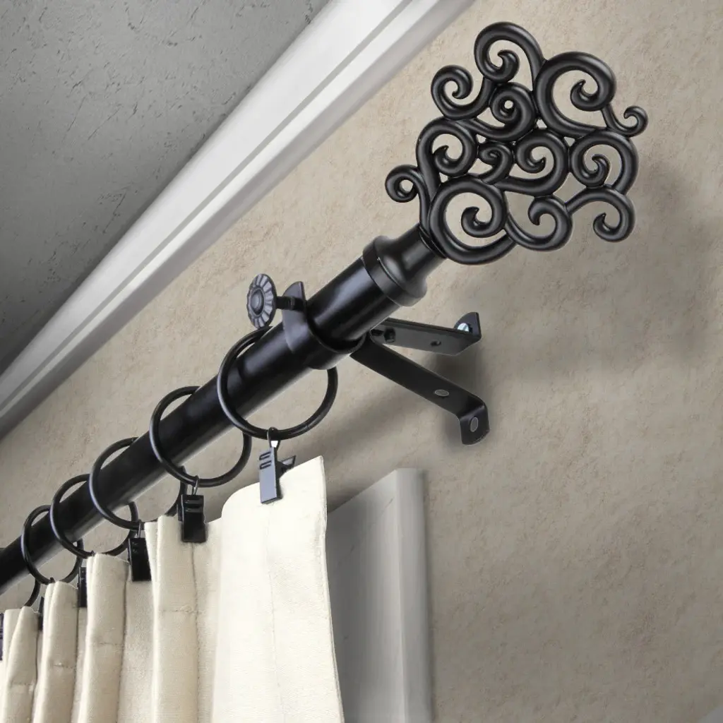 Fabritio 13/16 Inch Dia. Curtain Rod, Black, 120"-170"