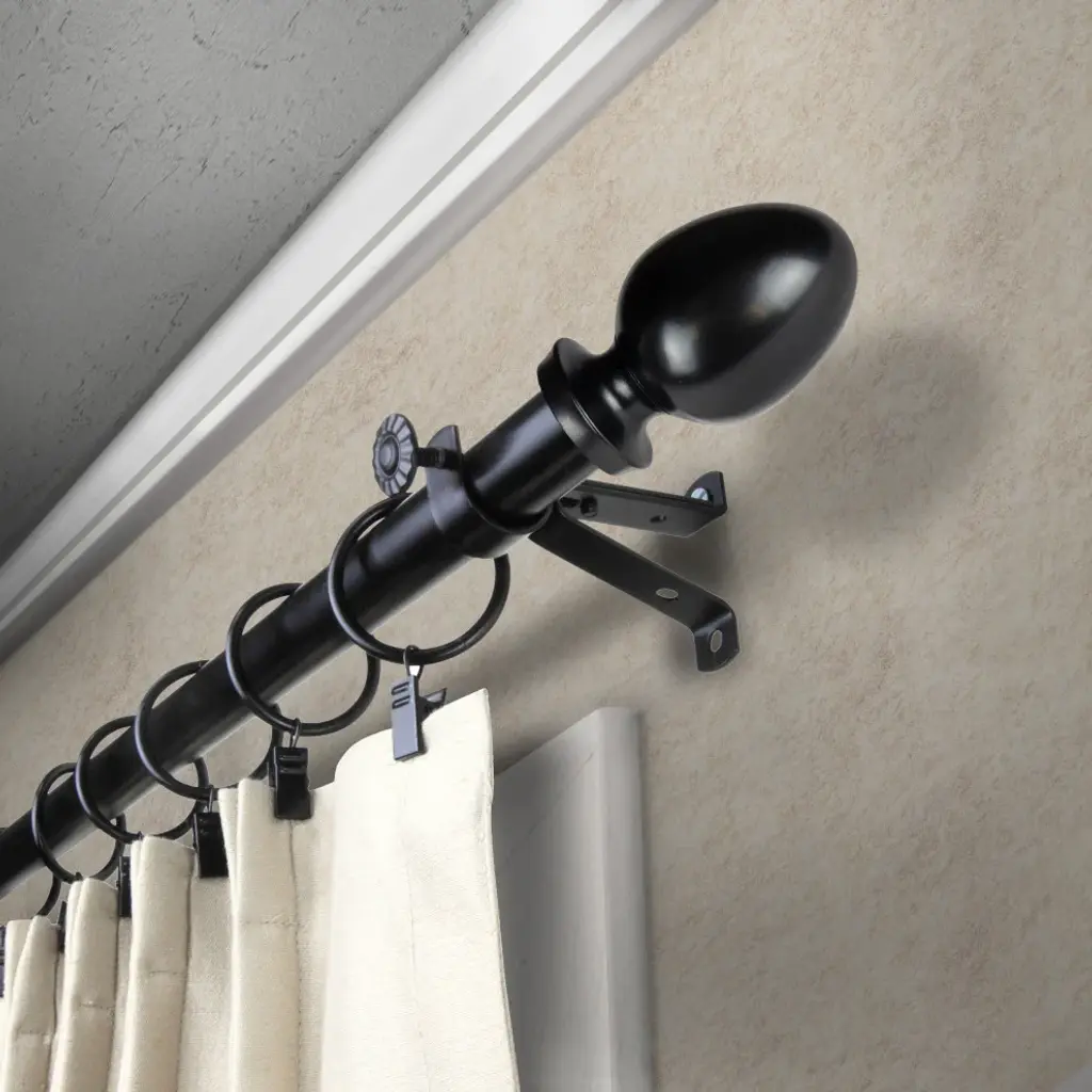 Faye 13/16" Curtain Rod, Black, 28-48"