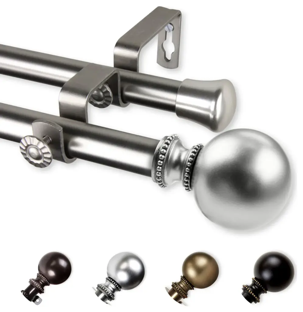 Faye 13/16" Double Curtain Rod Satin Nickel