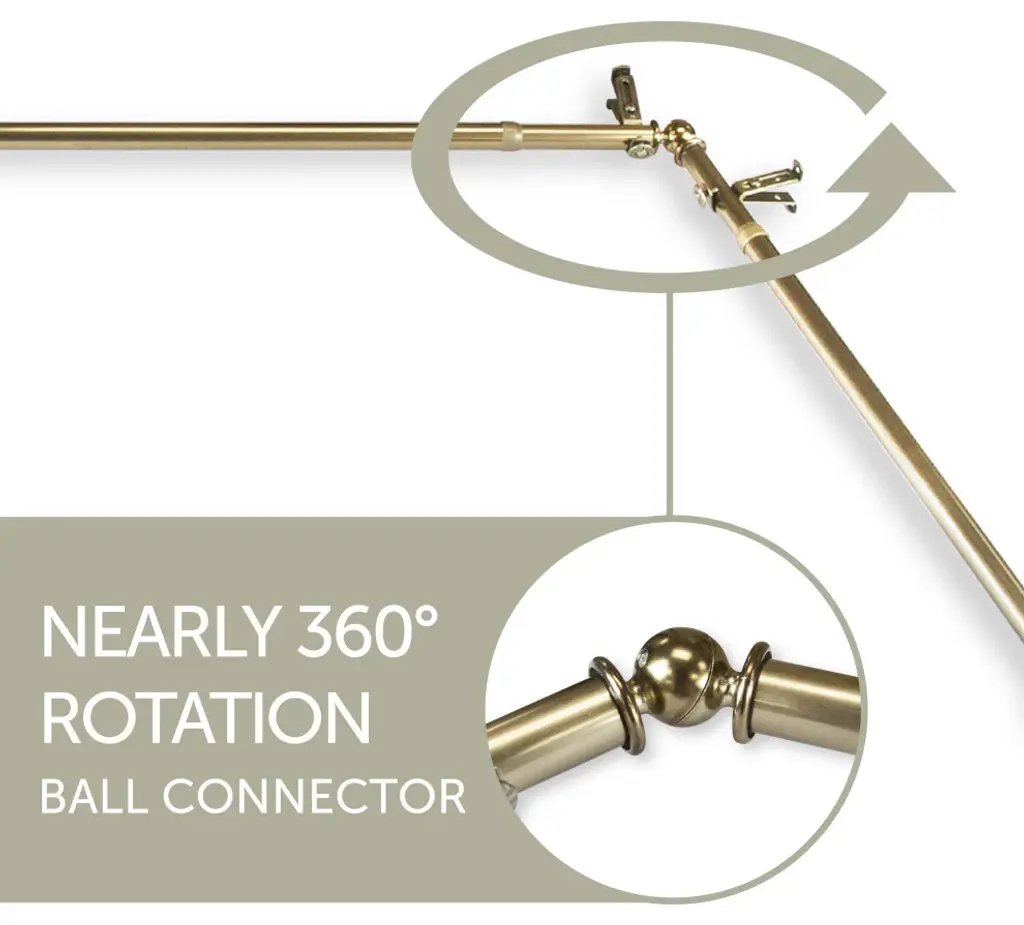 Our Multi Sided Bay Window Rod are the perfect way to decorate a multi-sided bay window with a stylist touch not often found. Offered in 3 different variations, 4, 5 and 6-sided rods can be used for multi window and bay windows. Rods connect using our corner connector which allows for a nearly 360 rotation.Includes five 13/16" diameter rods, 2 finials, 4 corner connectors, and mounting hardwareRod Projection: 2.875"Finial Measurement: 3-1/2" W X 3-1/4" H x 2/5" DEach rod extends from 28-48"Steel Rod and Resin Finial Instruction Included