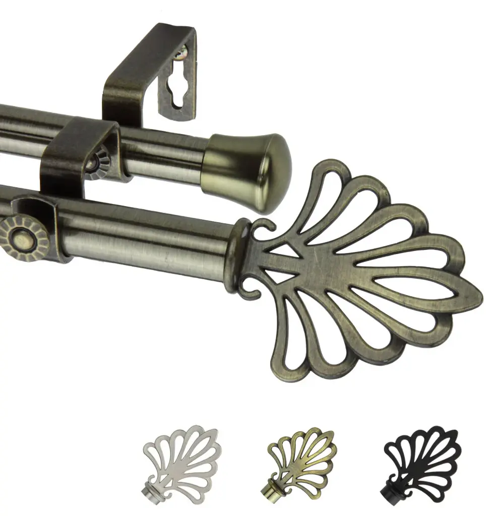 Florence Double 13/16" Dia. Curtain Rod, Antique Brass, 48"-84"