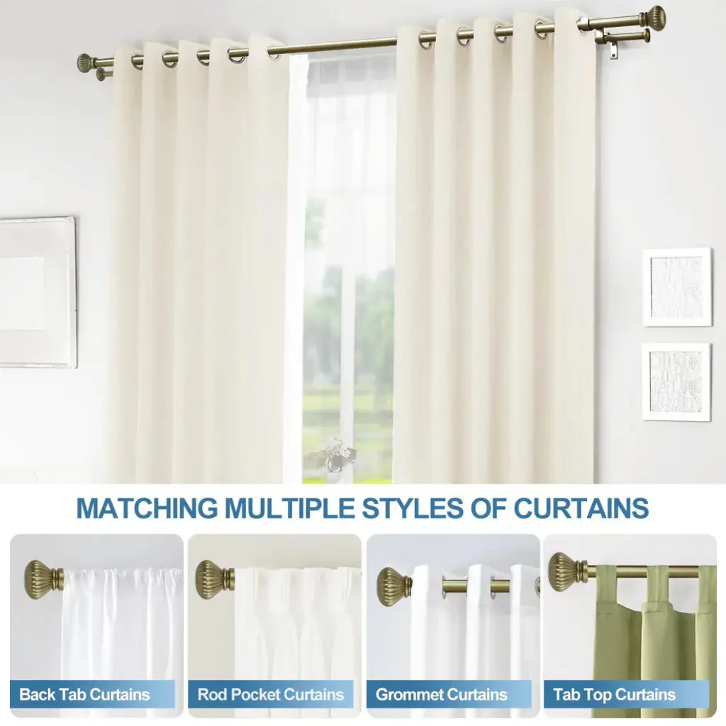 Fluted Ball Adjustable Double Curtain Rod Set, 5/8", Antique Gold, 28"-48"