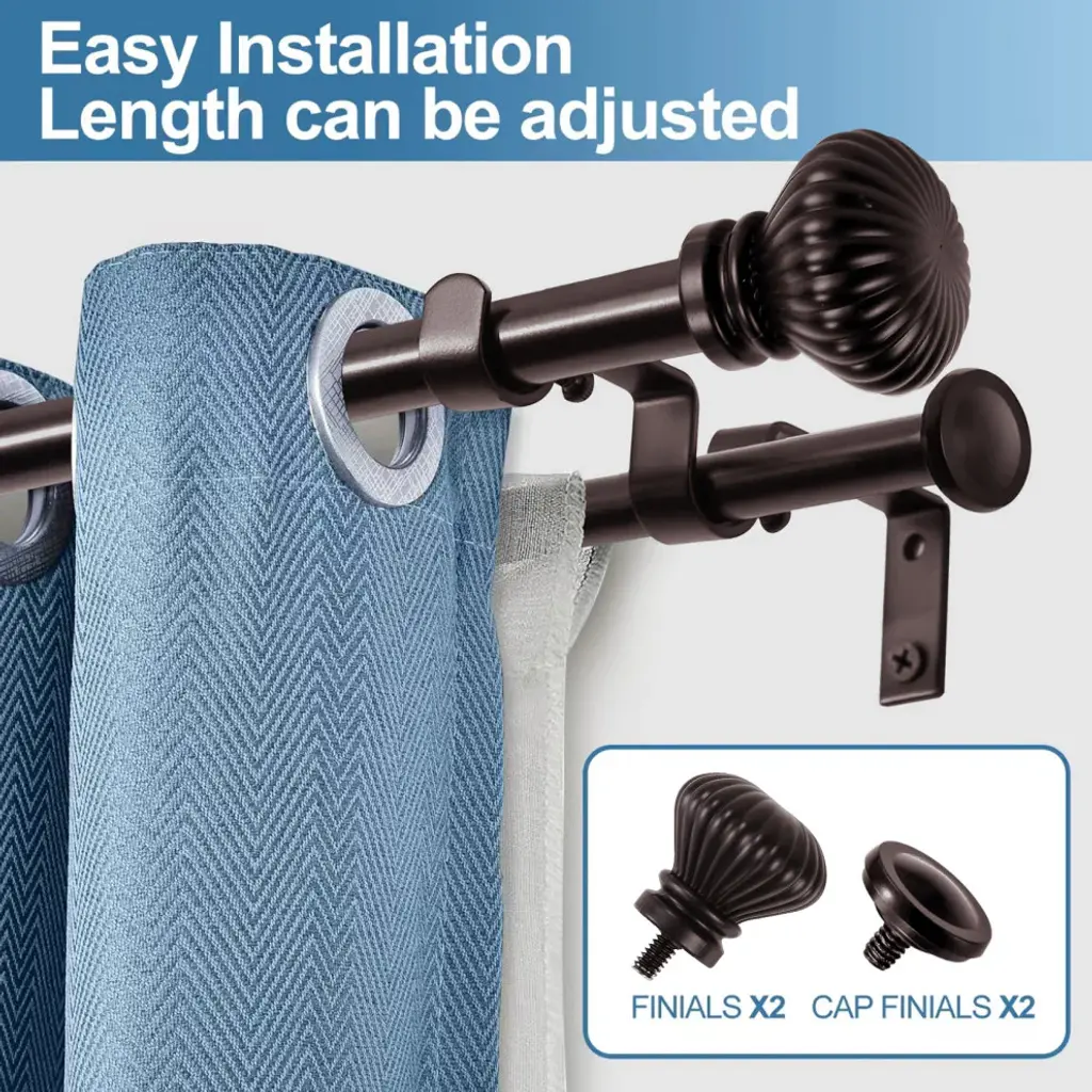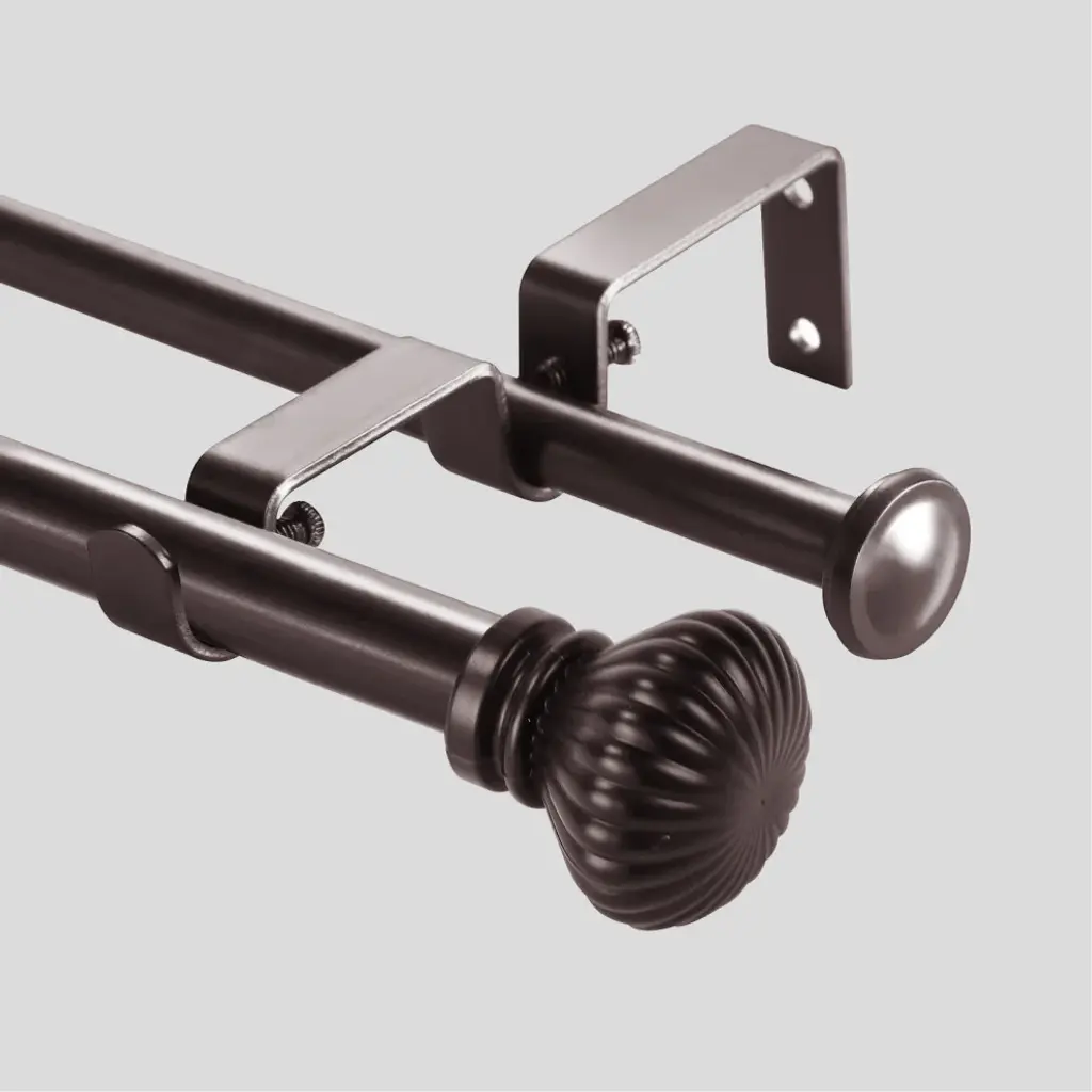Fluted Ball Adjustable Double Curtain Rod Set, 5/8", Bronze, 84"-120"